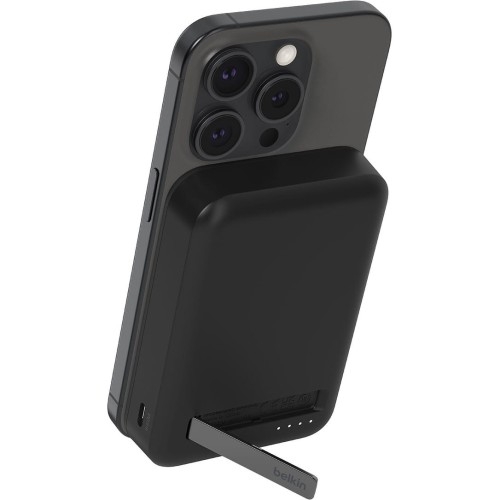 Belkin Boost Charge Pro Magnetic Wireless Power Bank 10K + Stand 10000mAh Qi2 15W Dla smartfonów Apple z Magsafe:Apple iPhone z serii 16 / 15 / 14 / 13 / 12   Dodatkowa moc 10'000 mAh z ładowaniem Qi2 15W Kompaktowa bateria zewnętrzna o pojemności 10000mAh firmy Belkin zgodna z funkcją ładowania bezprzewodowego oraz z systemem mocowania MagSafe, przeznaczona dla smartfonów Apple z MagSafe. Dzięki niewielkiej i podręcznej konstrukcji oferuje wyjątkową wygodę w użytkowaniu oraz doskonale nadaje się do zabrania ze sobą i podtrzymywania pracy iPhone'a gdziekolwiek jesteś. Wbudowana ładowarka bezprzewodowa obsługuje standard ładowania Qi2 o mocy max 15W, zapewniając stały dopływ energii dla Twojego smartfona od Apple. Dodatkowym atutem jest rozkładana podpórka Stand, pozwalająca na wygodne korzystanie ze smartfona w pozycji poziomej podczas jego ładowania. Obudowa produktu (z wyłączeniem kabla) została wykonana w co najmniej 72% z tworzywa sztucznego pochodzącego z recyklingu poużytkowego, a opakowanie produktu jest w 100% wolne od plastiku. Długość kabla USB-C/USB-C: 1m *Przedmiotem sprzedaży jest sam power bank z kablem, pozostałe akcesoria widoczne na zdjęciach służą jedynie przedstawieniu jego funkcjonalności. Kolor producenta: Black (czarny)     Power Bank z MagSafe - 15W Power Bank posiada dwa wejścia/wyjścia USB-C oraz jedno wyjście ładowania indukcyjnego Qi2 ze wsparciem dla systemu mocowania MagSafe. Dzięki wejściom USB-C szybko i wygodnie go doładujesz, a wbudowany wskaźnik diodowy LED na bieżąco informuje o stanie jego naładowania. Ponadto funkcja ładowania w przelocie Pass-Through umożliwia jednoczesne ładowanie iPhone'a oraz samego powerbanka w tym samym czasie. Kompatybilny z pokrowcami MagSafe o grubości do 3mm. 1x wyjście: Pad ładowania bezprzewodowego Qi2 15W max z mocowaniem Magsafe (dotyczy ładowania tylko 1 urządzenia na padzie Qi2) 2x wejście/wyjście: Porty USB-C - do ładowania baterii (należy posiadać własną ładowarkę USB-C PD 18W) lub do ładowania dowolnego, kompatybilnego urządzenia z prędkością do 20W max (dotyczy ładowania tylko jednego urządzenia na jednym z dostępnych dwóch portów USB-C) Należy mieć na uwadze, że podczas ładowania dwóch lub trzech urządzeń jednocześnie moc ładowania jest współdzielona i rozkłada się następująco: ładowanie bezprzewodowe do 7,5W max a ładowanie przewodowe do 10W max dzielone między oba porty USB-C. W zestawie znajduje się kabel USB-C/USB-C 1m.       Nie zasłania obiektywów Minimalistyczny design o niewielkiej bryle zaprojektowany został w taki sposób, aby nie zasłaniać kamer urządzenia podczas ładowania nawet z iPhone'ami w wersji Mini, dzięki czemu możesz nadal swobodnie używać swojego smartfona, jednocześnie dostarczając potrzebnej mu energii.       Rozkładana podpórka Stand Świetnym udogodnieniem jest wbudowany stojak, który po rozłożeniu umożliwia wygodne korzystanie ze smartfona w pozycji poziomej lub pionowej podczas jego ładowania. Dzięki takiemu rozwiązaniu zawsze masz swobodny wgląd na ekran swojego telefonu.       Smukły i kompaktowy Eleganckie wykończenie sprawia, że całość wygląda smukło i stylowo, a jego niewielkie rozmiary w połączeniu z opływowym kształtem oferują jednocześnie wygodę w jego transporcie, dzięki czemu z łatwością zmieścisz go do torby czy plecaka. Wymiary: 10,7 x 6,8 x 1,77 cm       Bezpieczeństwo użytkowania Power Bank posiada czujniki monitorujące, zabezpieczające Twoje urządzenie przed skutkami przegrzania, przepięć lub nieprawidłowości w obwodzie. Dodatkowo Belkin zapewnia gwarancję bezpieczeństwa podłączonego sprzętu o wartości do 2,000 Euro.       Najważniejsze cechy produktu Pojemność: 10 000 mAh Ładowanie bezprzewodowe Qi2 do 15W max z funkcją mocowania MagSafe Ładowanie przewodowe USB-C PD 20W max Ładowanie 2 lub 3 urządzeń jednocześnie: 7,5W bezprzewodowo + 10W przewodowo (dzielone między 2 porty USB-C) Możliwość ładowania w przelocie Pass-Through Kompatybilny z pokrowcami MagSafe o grubości do 3mm Nie zasłania obiektywów nawet z iPhone'ami w wersji Mini Wskaźnik diodowy LED Minimalistyczny i kompaktowy rozmiar W opakowaniu kabel USB-C/USB-C o długości 1m Power Bank nie posiada ładowarki w zestawie (zalecana 18W z USB-C PD) Wykonany z wykorzystaniem surowców z recyklingu z zachowaniem zrównoważonego rozwoju       Bądź gotowy na każdy dzień Zapoznaj się z prezentacją producenta na temat oferowanego produktu i poznaj jego zalety i właściwości:
