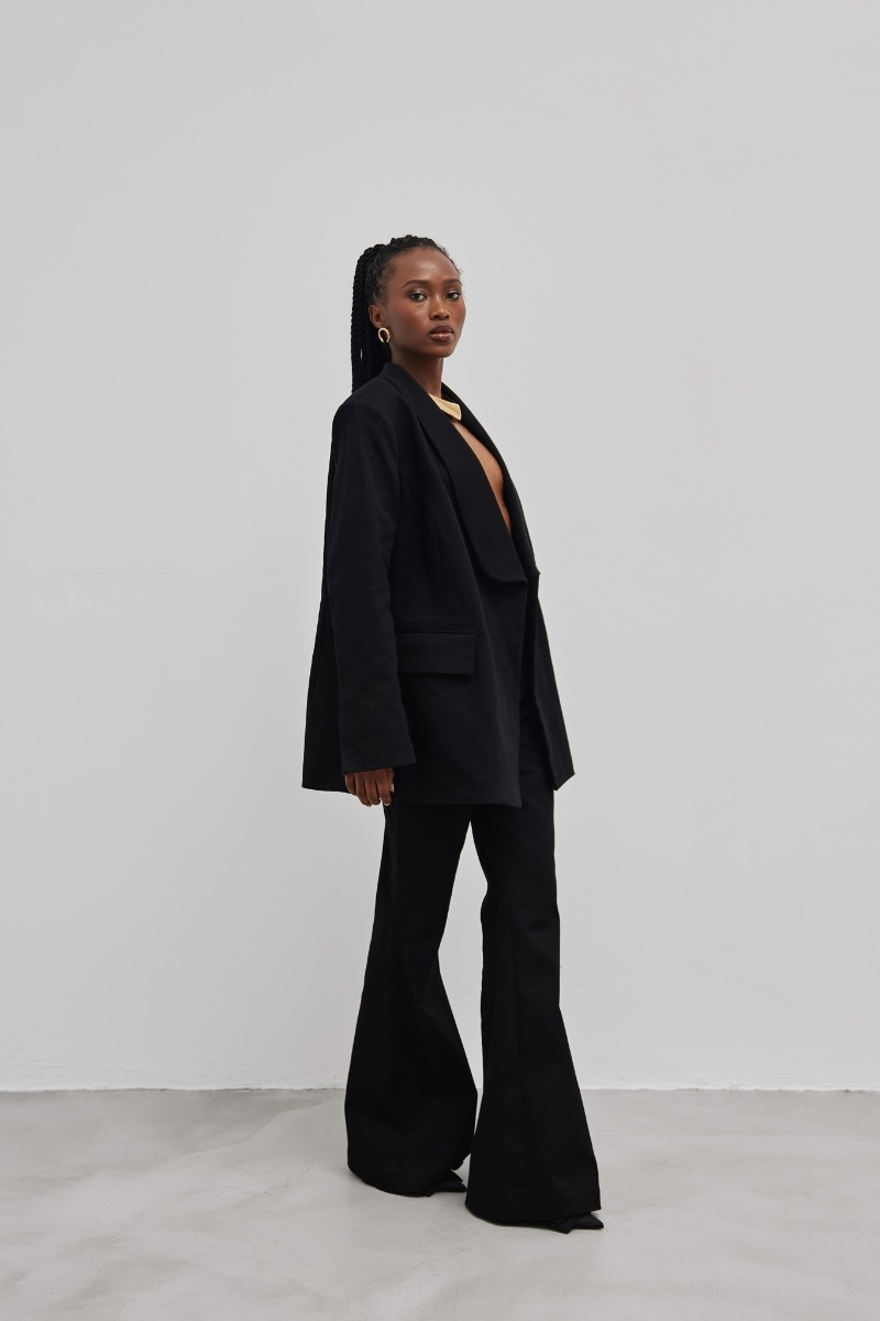 Spodnie ICONIC to prawdziwa klasyka, która wpisuje się w codzienny styl i jest niezwykle uniwersalna. Wykonane z wysokiej jakości bawełny, są mocne i trwałe, zapewniając wygodę i komfort noszenia przez cały dzień. Ich ponadczasowy kolor czarny sprawia, że doskonale pasują do wielu innych kolorów i wzorów. Nogawki spodni rozszerzane ku dołowi nadają im charakterystyczny wygląd retro, dodając stylowego twistu do każdej stylizacji. W połączeniu z wysoką talią, której klasyczny fason podkreśla kobiecą sylwetkę, spodnie te gwarantują elegancję i wyrafinowanie w każdej sytuacji. Praktyczne dwie kieszonki po bokach . Ich wygodne rozmieszczenie sprawia, że są one łatwo dostępne i praktyczne w użyciu. Spodnie zapinane są na zamek błyskawiczny i guzik, co dodaje im prostoty i szykownego efektu. Ten klasyk pasuje do wielu stylizacji, zarówno tych eleganckich, jak i casualowych. Można je łączyć z różnymi bluzkami, swetrami i koszulami, tworząc wiele interesujących kombinacji. Ten fason to idealny wybór dla kobiet, które cenią sobie ponadczasowe fasony, doskonałe wykonanie i wygodę podczas noszenia. Bez wątpienia staną się one niezastąpionym elementem garderoby, dodając szyku i stylu każdej stylizacji. Tworzą komplet z marynarką TIMELESS. Modelka ma 169cm wzrostu i prezentuje rozmiar S. Skład: 98% Bawełna, 2% Spandex ZALECANA PIELĘGNACJA :