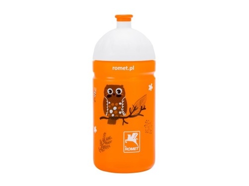 Bidon 0,5 l. dziecięcy,pomarańczowy półprzeźroczysty/nakrętka biała logo ROMET