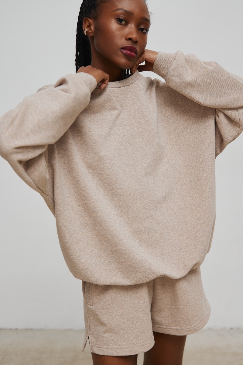 Bluza o kroju regular fit z brzegami zakończonymi ściągaczem w kolorze beżowym z efektem melanżu. Wykonana z nieocieplanej dzianiny dresowej . Jeden z najbardziej klasycznych krojów wśród modeli damskich bluz, urozmaicony wstawką przy dekolcie. Świetnie łączy się zarówno z jeansem, jak i bielą, czy czernią. Pozwoli stworzyć wiele uniwersalnych i ponadczasowych stylizacji. Sprawdzi się zarówno w sezonie wiosenno-letnim, jak i jesienno-zimowym. Odpowiednia dla kobiet w każdym wieku! Skład: 90% Bawełna, 10% Poliester. Materiał:dzianina dresowa bez ocieplenia o gramaturze 280g; dodatkowo uszlachetniona poprzez enzymowanie zmiękczające materiał oraz silikonowanie, które utrwala efekt. ZALECANA PIELĘGNACJA: