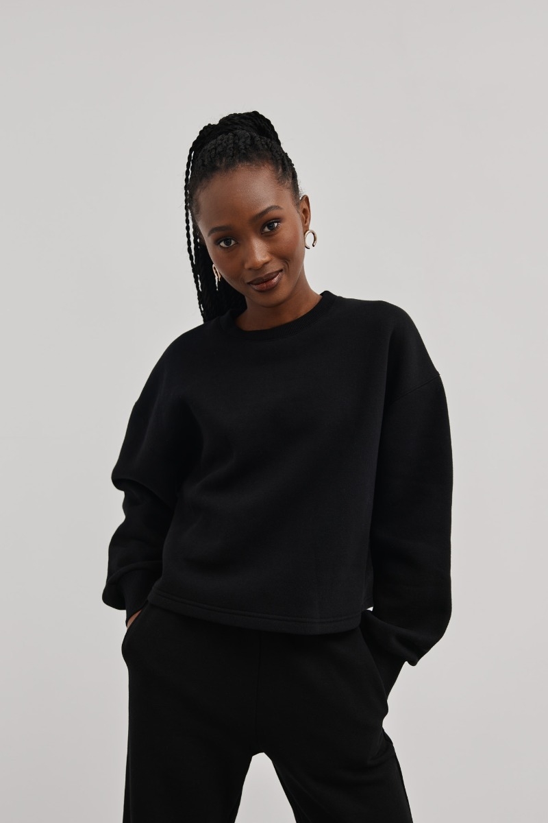 Opinie o Bluza o skróconym kroju w kolorze DEEP BLACK - COZY-M/L Marsala