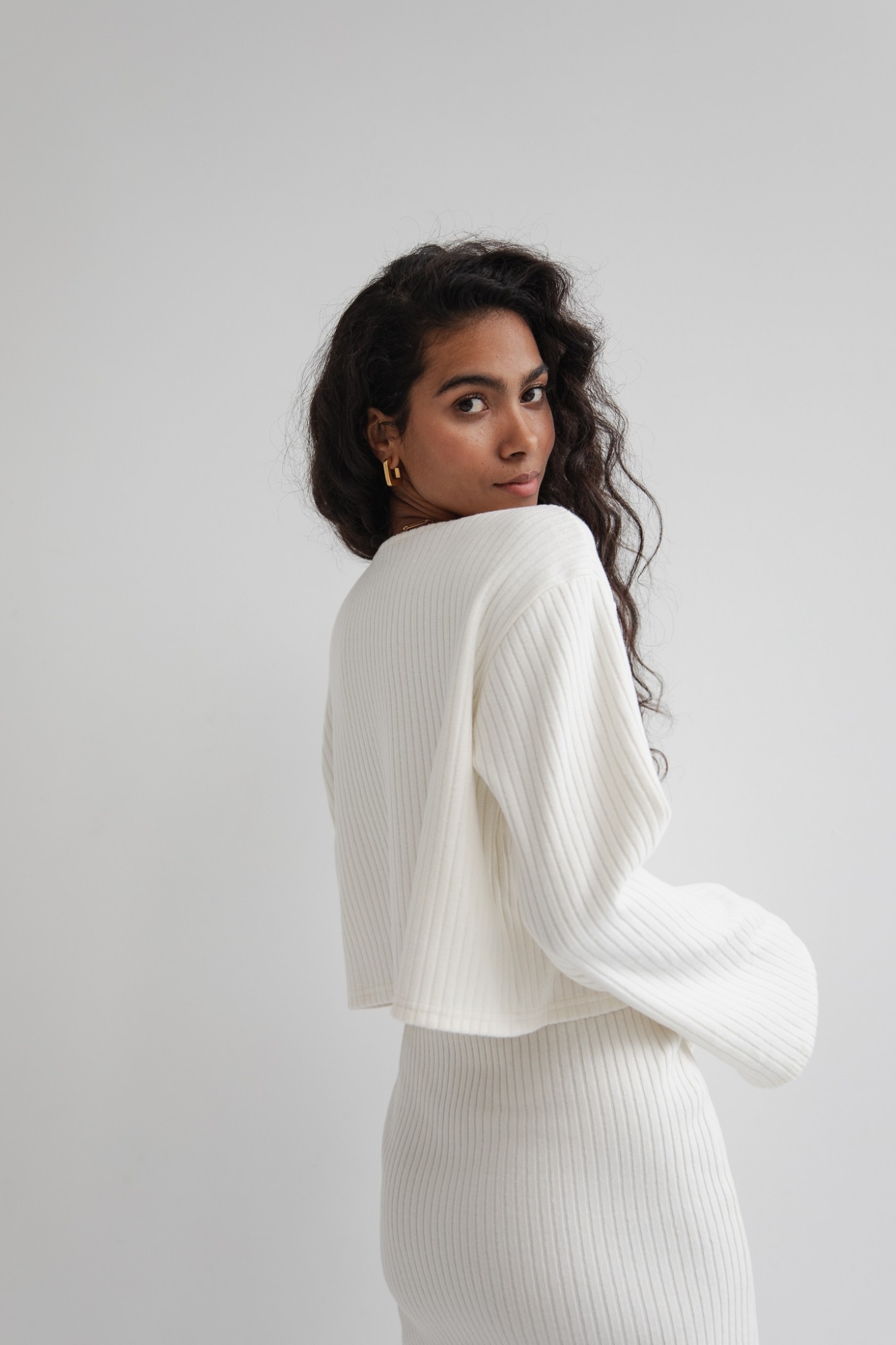 Damska bluzka wykonana z dzianiny w wąskie paski z efektem SKIN PEACH w kolorze białym . Ten model Posiada długie, luźne, rozszerzane rękawy. Klasyczny półokrągły dekolt. Bluzka rozszerza się ku dołowi. Tył oraz przód zupełnie gładki. Materiał delikatny, bardzo miły w dotyku. Fason, który luźno układa się na sylwetce i nie krępuje ruchów. Świetna jako element outfitu casual. Komponuje się idealnie z botkami oraz z obuwiem sportowym . Tworzy komplet ze spódnicą BLISS Modelka ma 175 cm wzrostu i prezentuje rozmiar S Skład: 95% Bawełna 5% Elastan PRODUKT POLSKI - Marsala Collection ZALECANA PIELĘGNACJA: