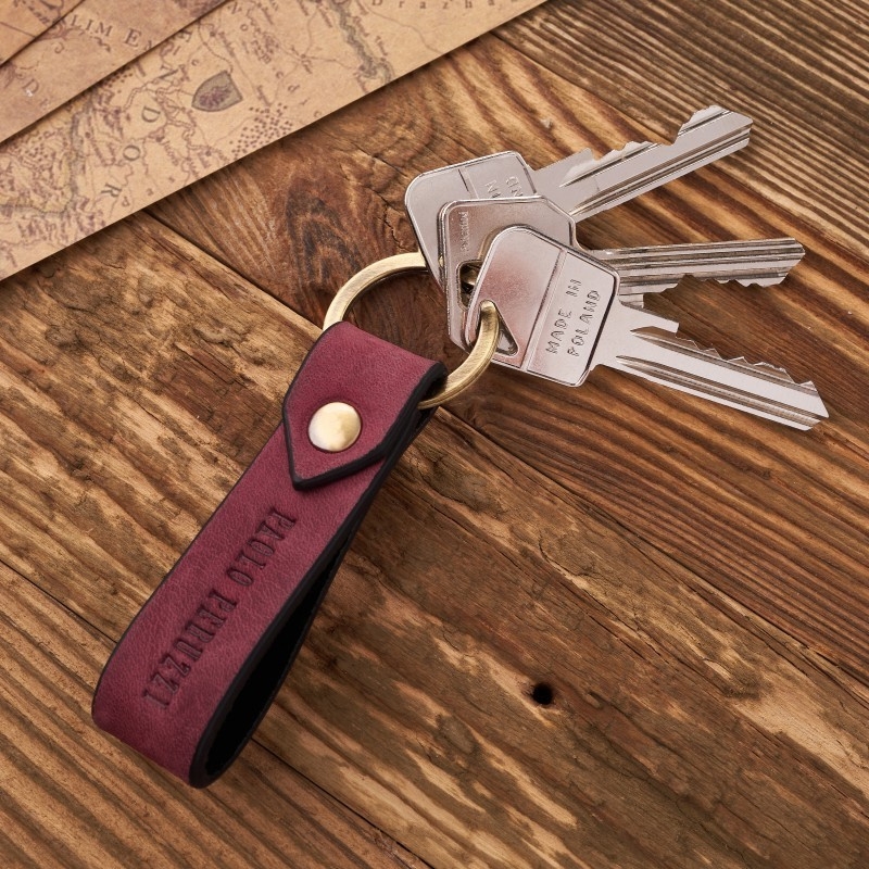 Breloczek T–87 wykonano ze skóry naturalnej hunter o klasycznym, prostym designie. Brelok wyposażono w solidne, sprężyste kółko w kolorze złotym, na którym z łatwością zamocujesz klucze. Tłoczone logo producenta jest potwierdzeniem wysokiej jakości wykonania breloczka.