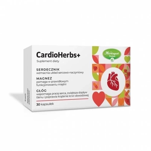 Suplement diety CardioHerbs+ przeznaczony jest dla osób dorosłych, które chcą wspomóc funkcjonowanie układu sercowo-naczyniowego. Preparat pozwala uzupełnić codzienną dietę w takie składniki jak magnez oraz owoc głogu i ziele serdecznika.