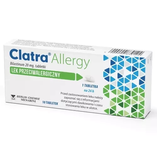Produkt leczniczy Clatra Allergy 20mg zawiera bilastynę jako substancję czynną. Wskazaniem do stosowania leku jest łagodzenie objawów kataru siennego, a także innych postaci alergicznego zapalenia śluzówki nosa oraz pokrzywki u osób powyżej 12 lat.