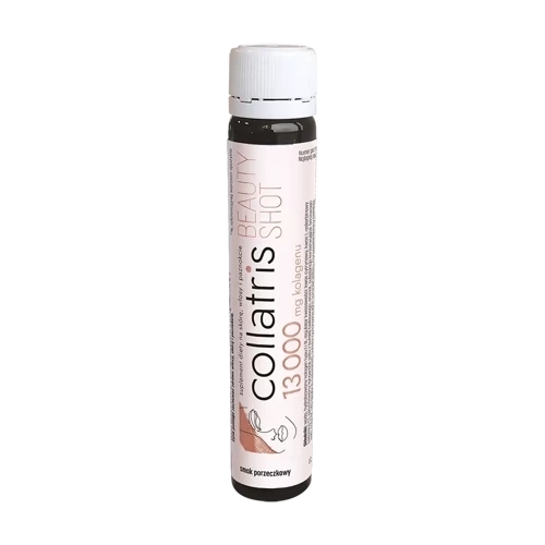 Suplement diety Collatris Beauty Shot przeznaczony do stosowania jako uzupełnienie codziennej diety w kompozycję składników, które wspierają utrzymanie zdrowej skóry oraz mocnych i zdrowych paznokci i włosów. Preparat przeznaczony dla osób dorosłych.