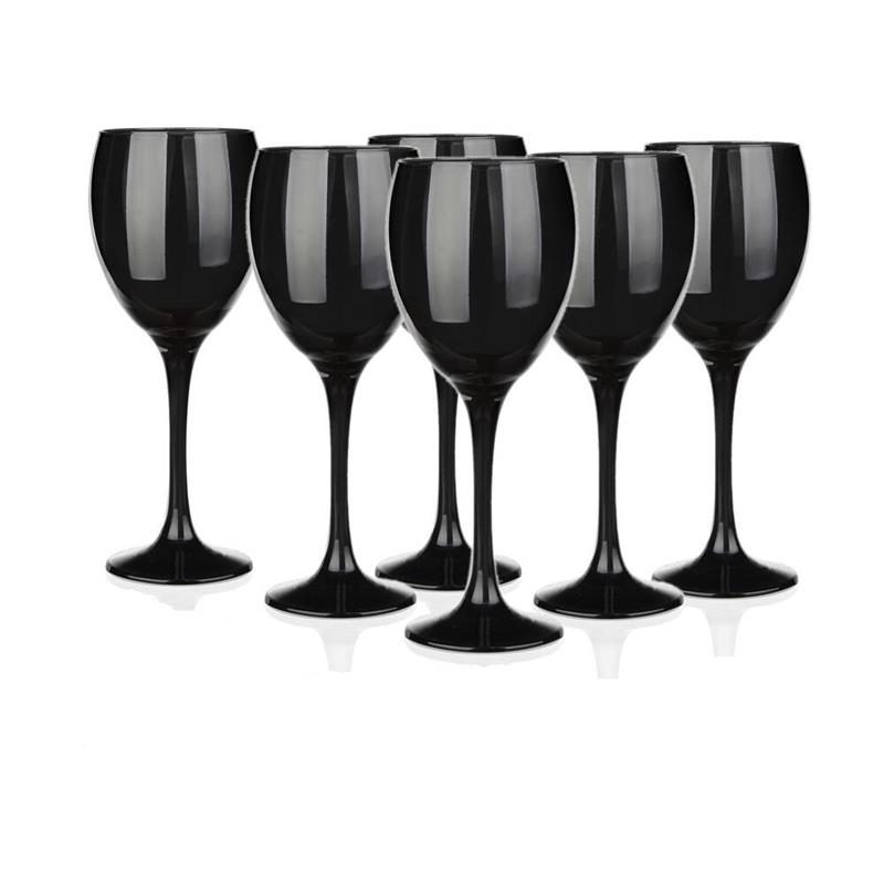 Kieliszki do wina czarne - eleganckie i praktyczne Kieliszki do wina czarne będą wspaniałą ozdobą stołu bez względu na okazję - elegancką kolację z rodziną, czy imprezę sylwestrową z przyjaciółmi. Będą pięknie prezentować się także w każdym barku. Kieliszki te są jednak nie tylko urodziwe, ale również niezwykle praktyczne. Mają idealną pojemność 300 ml i można je myć w zmywarce! W ofercie posiadamy także inne piękne kolorowe szklanki i kieliszki. Kieliszki do wina czarne - cechy produktu podana cena to cena za komplet 6 sztuk kolor: czarny sztuk w zestawie: 6 materiał wykonania: szkło pojemność: 300 ml wysokość: ok. 20,5 cm szerokość: ok. 8 cm można myć w zmywarce