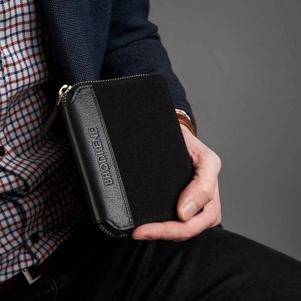 Stylowy czarny portfel męski Brødrene G-05LC z ochroną RFID i 11 przegródkami na karty.