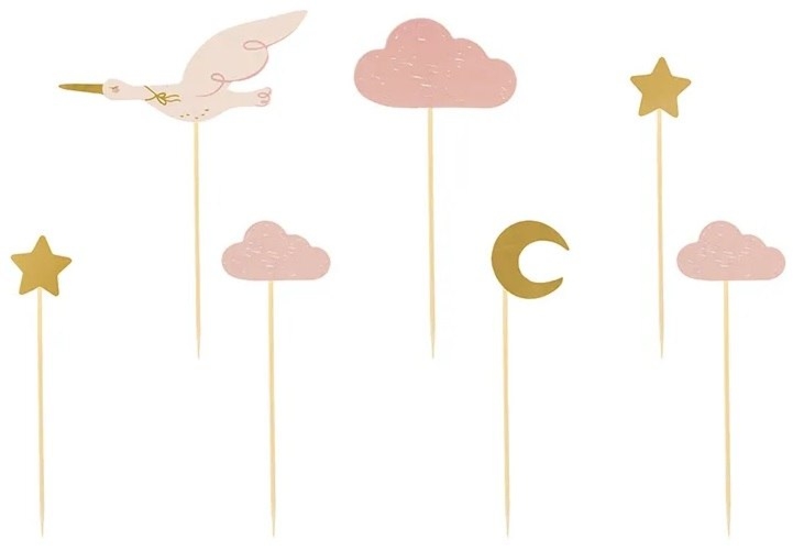 Dekoracje do muffinek - Bocian, mix wzorów i kolorów.