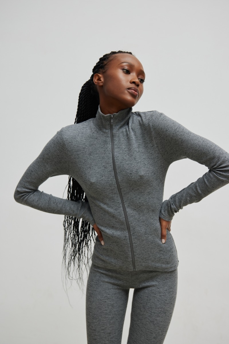 Poznaj nową odsłonę naszego BESTSELLERU topu Moody . Bluzka typu basic wykonana z elastycznego, prążkowanego materiału w kolorze ciemnoszarym z efektemmelanżu . Fason o dopasowanym kroju z długim rękawem oraz wyższym kołnierzem . Zapinany na zamek błyskawiczny . Niezaprzeczalny atut modelu stanowi przyjemny w dotyku, elastyczny oraz wysokiej jakości materiał, który pozwala na doskonałe dopasowanie do sylwetki. Jeden z produktów, które stanowią idealną bazę do stworzenia niemalże każdej stylizacji. Modelka ma 169 cm wzrostu i prezentuje rozmiar XS/S. Skład: 95% Bawełna, 5% Elastan Zastrzegamy prawo do różnicy w podanych wymiarach na stronie pomiędzy 1-2 cm , wynikającej z kurczliwości tego typu dzianiny.