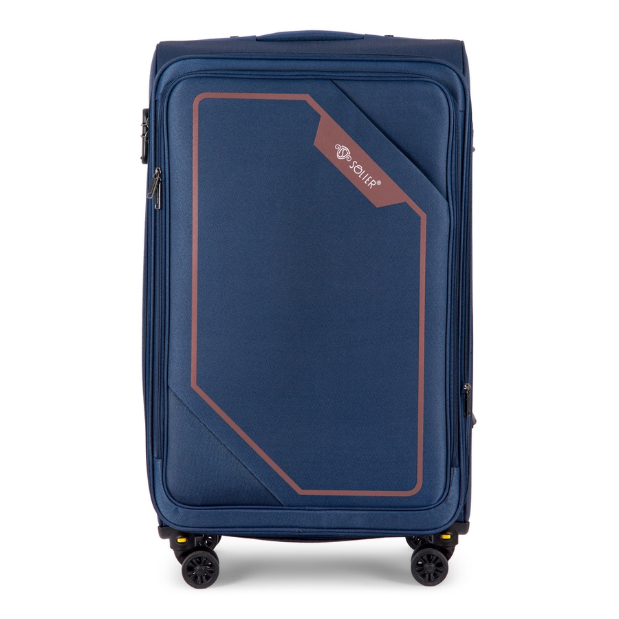 Opinie o Duża walizka miękka XL 29'' SOLIER SOFTFLEX 2240 granatowo-brązowa