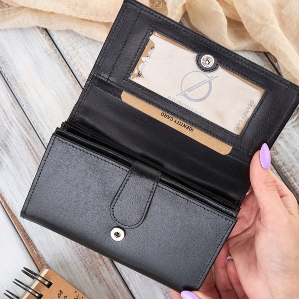 Elegancki portfel damski Brødrene G-32 z licowej skóry, ochroną RFID i licznymi przegródkami.