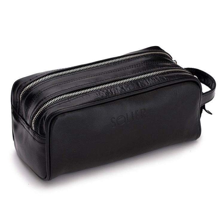 Wykonana ze skóry naturalnej, średniej wielkości kosmetyczka męska.