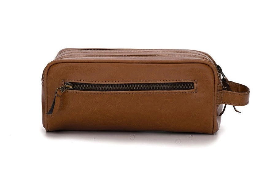 Wykonana ze skóry naturalnej, średniej wielkości kosmetyczka męska.