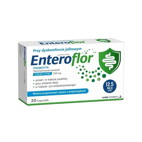 Suplement diety Enteroflor przeznaczony jest do stosowania u dorosłych i dzieci powyżej 3. roku życia. Preparat uzupełnia codzienną dietę w drożdżaki probiotyczne Saccharomyces boulardii CNCM I-3799. Polecany jest m.in. podczas antybiotykoterapii.