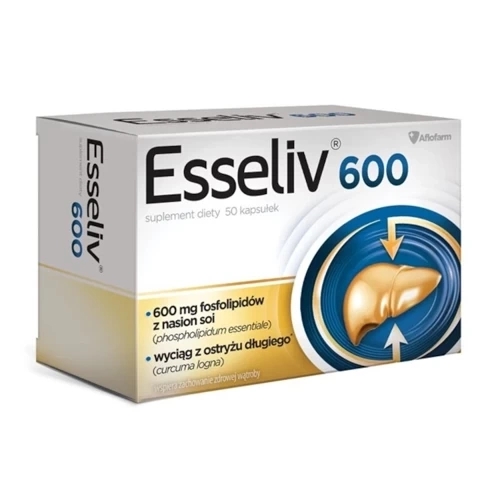 Suplement diety Esseliv 600 uzupełnia codzienną dietę w fosfolipidy sojowe oraz w wyciąg z ostryżu długiego. Stosowanie preparatu jest polecane głównie dla osób, które chcą wspomóc prawidłowe funkcjonowanie swojej wątroby. Produkt dla osób dorosłych.