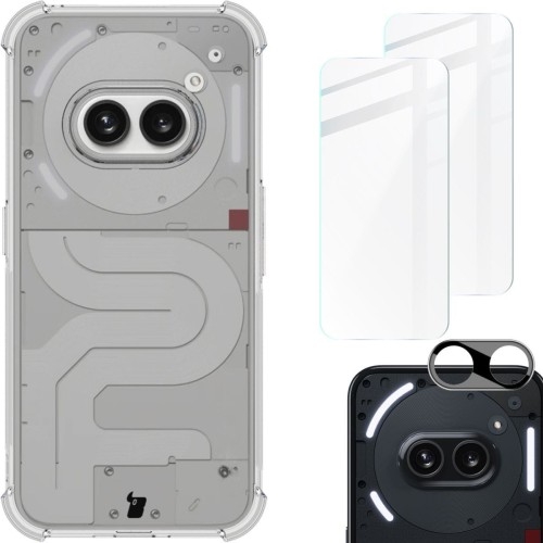 Etui Bizon Case Clear + 2 szt. Bizon Glass + Bizon Lens Nothing Phone (2a) Materiał wysokiej jakości Elastyczne etui marki Bizon Case z serii Clear Pack. Wykonane z wysokiej jakości miękkiego termoplastycznego poliuretanu zapewnia ochronę oraz dobry chwyt. Zestaw składa się z przezroczystego pokrowca, 2 szkieł hartowanych na wyświetlacz oraz jednego szkła chroniącego aparat. Kolor producenta: Clear Etui kompatybilne ze szkłami o wymiarach mniejszych niż (dług./szer.): 16,03 x 7,30 cm Lekka i przezroczysta ochrona Wyjątkowo lekki futerał, nie pogrubia znacznie urządzenia, zachowując oryginalny kształt telefonu. Zapewnia ochronę przed zarysowaniami oraz uderzeniami. Dobrze leży w dłoni, a lekko wystające krawędzie chronią kamerę i ekran przed zarysowaniami na płaskich powierzchniach. Wybranie tego etui wiąże się z komfortem użytkowania oraz bezpieczeństwem. Precyzyjne wycięcia Zapewniają swobodny dostęp do wszystkich interfejsów smartfona. Niezwykle funkcjonalne i wygodne w użytkowaniu. Posiada zintegrowane osłony przycisków. Specjalna konstrukcja Pokrowiec po wewnętrznej stronie posiada specjalna kropkowaną konstrukcję, która zapobiega przywieraniu etui do urządzenia i powstawaniu nieestetycznego efektu przyklejania.