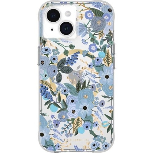 Etui Case Mate Rifle Paper Co. Garden Party (MagSafe) Apple iPhone 15 Niebieski ogród na etui Stylowe, piękne etui marki Case Mate z serii Rifle Paper Garden Party to smukła i elegancka ochrona smartfona zdobiona kwiatowym wzorem i złotą płytką magnetyczną do MagSafe. Case jest wykonany z eko-materiałów pochodzących z recyklingu. Wzór kwiatowy to oryginalna grafika Rifle Paper CO. Poczuj powiew wiosny na własnym smartfonie! Kompatybilne z funkcją MagSafe. Kolor producenta: Blue Etui kompatybilne ze szkłami o wymiarach mniejszych niż (długość x szerokość): 14,49 x 6,95 cm Przedmiotem sprzedaży jest samo etui, pozostałe akcesoria widoczne na zdjęciach służą jedynie przedstawieniu funkcjonalności produktu. Wszystko złoto co się świeci Futerał dzielnie znosi upadki do 3m wysokości. Twarde plecki z wytrzymałego polikarbonu idealnie przylegają do pokrywy smartfona i zabezpieczają go przed uszkodzeniami, zarysowaniami i zachlapaniami. Jak już mowa o pleckach, to tył etui Rifle Paper Garden Party zdobiony jest złotą folią, która cudnie dopełnia całość etui. Ponadto case posiada wbudowany pierścień magnetyczny, który wzmacnia działanie funkcji MagSafe. Twoje zdrowie! Jest bukiet kwiatów, to świętujmy dalej!Powierzchnia etui została zabezpieczona przed bakteriami powłoką przeciwbakteryjną, dzięki czemu pozostaje ono cały czas czyste, przezroczyste i przyjemne w użytkowaniu. Podniesione krawędzie Case dzięki swojej kompaktowej i minimalistycznej budowie zachowuje oryginalne kształty smartfona. Kwiatowy wzór dodaje lekkości i będzie uzupełnieniem każdej stylizacji. Lekko podniesione krawędzie chronią ekran smartfona, a także wyspę aparatu, gdzie podwyższone są o 5 mm. Idealne etui dla osób, które cenią sobie styl i ochronę w jednym!