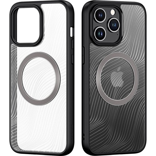 Etui Dux Ducis AIMO Series Premium Case MagSafe Apple iPhone 15 Pro Max Zachowaj oryginalny wygląd smartfona To przeźroczyste etui wykonane z połączenia elastycznego materiału TPU (boki) i twardego poliwęglanu (plecki), doskonale przylega do telefonu nie narzucając się swoim wyglądem. Smukłe i lekkie plecki marki Dux Ducis z serii AIMO. Chronią telefon przed przykrymi skutkami użytkowania - zarysowaniami i uderzeniami. Etui kompatybilne ze szkłami o wymiarach mniejszych niż (dług./szer./przek.): 15,85 x 7,52 x 16,63 cm Kolor producenta: Black (przezroczyste matowe z czarną ramką) Wygodne i estetyczne Matowa powierzchnia plecków niweluje odciski palców, zachowując estetyczny wygląd. Pokrowiec zapewnia pewny i dobry chwyt. Praktyczne użytkowanie Futerał posiada zintegrowane osłony na przyciski i wycięcia na porty. Oferuje pełen dostęp do interfejsów, zapewniając najwyższy komfort użytkowania. To etui na telefon zabezpiecza ekran i kamerę przed zarysowaniem na płaskich powierzchniach, posiada delikatnie wystające krawędzie. Specjalnie zaprojektowane narożniki rozpraszają siłę uderzenia i amortyzują wstrząsy zabezpieczając smartfon podczas upadków. Mag etui! Etui posiada magnetyczny ring, który jest kompatybilny z akcesoriami MagSafe. Możesz ładować swój telefon przy użyciu ładowarek zgodnych z tym standardem, korzystać z uchwytu samochodowego i innych produktów współpracujących z MagSafe bez zdejmowania pokrowca.