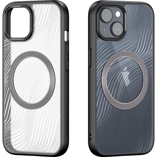 Etui Dux Ducis AIMO Series Premium Case MagSafe Apple iPhone 15   Zachowaj oryginalny wygląd smartfona To przeźroczyste etui wykonane z połączenia elastycznego materiału TPU (boki) i twardego poliwęglanu (plecki), doskonale przylega do telefonu nie narzucając się swoim wyglądem. Smukłe i lekkie plecki marki Dux Ducis z serii AIMO. Chronią telefon przed przykrymi skutkami użytkowania - zarysowaniami i uderzeniami.  Etui kompatybilne ze szkłami o wymiarach mniejszych niż (dług./szer./przek.): 14,65 x 6,99 x 15,20 cm Kolor producenta: Black (przezroczyste matowe z czarną ramką)       Wygodne i estetyczne Matowa powierzchnia plecków niweluje odciski palców, zachowując estetyczny wygląd. Pokrowiec zapewnia pewny i dobry chwyt.     Praktyczne użytkowanie Futerał posiada zintegrowane osłony na przyciski i wycięcia na porty. Oferuje pełen dostęp do interfejsów, zapewniając najwyższy komfort użytkowania. To etui na telefon zabezpiecza ekran i kamerę przed zarysowaniem na płaskich powierzchniach, posiada delikatnie wystające krawędzie. Specjalnie zaprojektowane narożniki rozpraszają siłę uderzenia i amortyzują wstrząsy zabezpieczając smartfon podczas upadków.      Mag etui! Etui posiada magnetyczny ring, który jest kompatybilny z akcesoriami MagSafe. Możesz ładować swój telefon przy użyciu ładowarek zgodnych z tym standardem, korzystać z uchwytu samochodowego i innych produktów współpracujących z MagSafe bez zdejmowania pokrowca.