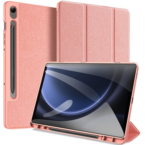 Etui Dux Ducis Domo Samsung Galaxy Tab S9 FE Ochronne etui z klapką Nowy produkt od zagranicznego producenta Dux Ducis z serii Domo to eleganckie etui z powierzchnią zapobiegającą powstawaniu odcisków palców. Nie pogrubia znacząco urządzenia, a przy tym jest wyjątkowo lekkie. Umożliwia korzystanie z funkcji Stand. Posiada wbudowany schowek na rysik, dzięki czemu możesz go mieć zawsze przy sobie. Kolor producenta: Pink Etui kompatybilne ze szkłami o wymiarach mniejszych niż (długość x szerokość): 25,15 x 16,30 cm Przedmiotem sprzedaży jest samo etui, pozostałe akcesoria widoczne na zdjęciach służą jedynie przedstawieniu jego funkcjonalności. Wygodny i funkcjonalny Specjalnie dobrane materiały zapewniają odpowiednią ochronę przed upadkami.Wycięcia na porty zewnętrzne zapewniają swobodny dostęp. Wbudowany schowek pozwala mieć rysik zawsze przy sobie. Ochrona 360° Etui chroni telefon przed zarysowaniami i zabrudzeniami. Wewnętrzna wyściółka przypominająca aksamit zapobiega zarysowaniom ekranu. Ustawienie poziome Dzięki funkcji "Stand" można bezproblemowo oglądać filmy czy seriale bez potrzeby trzymania tabletu w rękach.