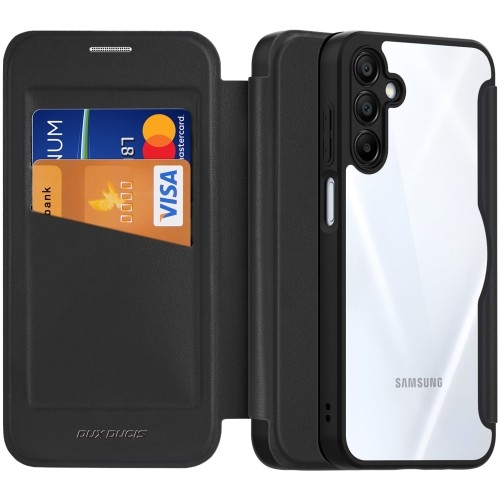 Etui Dux Ducis Skin X Pro Samsung Galaxy A16 5G Samsung Galaxy A16 4G Etui portfelowe Etui z klapką od marki Dux Ducis z serii Skin X Pro to wykonany z ekologicznej skóry stylowy dodatek, który zapewni nie tylko ochronę urządzenia, ale ułatwi również codzienną organizację. Kolor producenta: Blue (niebieski) Etui kompatybilne ze szkłami o wymiarach mniejszych niż (dług./szer.): 15,73 x 7,37 cm Przedmiotem sprzedaży jest samo etui, pozostałe akcesoria widoczne na zdjęciach służą jedynie przedstawieniu funkcjonalności produktu. Ochrona z każdej strony Skóra ekologiczna wsparta wewnętrzną, odporną na wstrząsy warstwą z TPU skutecznie chroni smartfon z każdej strony. Etui chroni telefon ze wszystkich stron przed zarysowaniami i zabrudzeniami, a zintegrowane osłony przycisków blokują drogę wtargnięcia brudowi czy drobinom piasku. Gładka powierzchnia jest odporna na powstawanie odcisków palców, dzięki czemu obudowa zawsze pozostaje czysta i schludna! Praktyczny schowek W środku etui znajdują się przegrody na karty kredytowe, dokumenty lub banknoty, dzięki czemu będziesz miał najważniejsze rzeczy zawsze pod ręką, a specjalna warstwa zapobiega kradzieży RFID. Magnetyczne zamykanie zabezpiecza etui przed samoczynnym otwarciem, dlatego możesz być spokojny o bezpieczeństwo Twojego urządzenia.