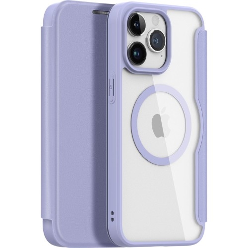 Etui Dux Ducis Skin X Pro Apple iPhone 15 Pro Max Magnetyczne etui z klapką Etui z klapką od marki Dux Ducis z serii Skin X Pro to wykonany z ekologicznej skóry stylowy dodatek, który zapewni nie tylko ochronę urządzenia, ale ułatwi również codzienną organizację. Kolor producenta: Purple Etui kompatybilne ze szkłami o wymiarach mniejszych niż (długość x szerokość x przekątna): 15,87 x 7,51 x 16,66 cm Przedmiotem sprzedaży jest samo etui, pozostałe akcesoria widoczne na zdjęciach służą jedynie przedstawieniu jego funkcjonalności. Ochrona z każdej strony Skóra ekologiczna wsparta wewnętrzną, odporną na wstrząsy warstwą z TPU skutecznie chroni smartfon z każdej strony. Etui chroni telefon ze wszystkich stron przed zarysowaniami i zabrudzeniami, a zintegrowane osłony przycisków blokują drogę wtargnięcia brudowi czy drobinom piasku. Gładka powierzchnia jest odporna na powstawanie odcisków palców, dzięki czemu obudowa zawsze pozostaje czysta i schludna! Praktyczny schowek W środku etui znajdują się przegrody na karty kredytowe, dokumenty lub banknoty, dzięki czemu będziesz miał najważniejsze rzeczy zawsze pod ręką. Magnetyczne zamykanie zabezpiecza etui przed samoczynnym otwarciem, dlatego możesz być spokojny o bezpieczeństwo Twojego urządzenia. Kompatybilność z MagSafe Wbudowany w etui magnetyczny pierścień zapewnia kompatybilność z akcesoriami MagSafe, co oznacza, że możesz korzystać ze swoich ulubionych akcesoriów bez potrzeby zdejmowania etui!