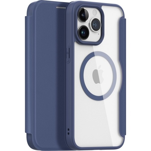Etui Dux Ducis Skin X Pro Apple iPhone 15 Pro Max Magnetyczne etui z klapką Etui z klapką od marki Dux Ducis z serii Skin X Pro to wykonany z ekologicznej skóry stylowy dodatek, który zapewni nie tylko ochronę urządzenia, ale ułatwi również codzienną organizację. Kolor producenta: Blue Etui kompatybilne ze szkłami o wymiarach mniejszych niż (długość x szerokość x przekątna): 15,87 x 7,51 x 16,66 cm Przedmiotem sprzedaży jest samo etui, pozostałe akcesoria widoczne na zdjęciach służą jedynie przedstawieniu jego funkcjonalności. Ochrona z każdej strony Skóra ekologiczna wsparta wewnętrzną, odporną na wstrząsy warstwą z TPU skutecznie chroni smartfon z każdej strony. Etui chroni telefon ze wszystkich stron przed zarysowaniami i zabrudzeniami, a zintegrowane osłony przycisków blokują drogę wtargnięcia brudowi czy drobinom piasku. Gładka powierzchnia jest odporna na powstawanie odcisków palców, dzięki czemu obudowa zawsze pozostaje czysta i schludna! Praktyczny schowek W środku etui znajdują się przegrody na karty kredytowe, dokumenty lub banknoty, dzięki czemu będziesz miał najważniejsze rzeczy zawsze pod ręką. Magnetyczne zamykanie zabezpiecza etui przed samoczynnym otwarciem, dlatego możesz być spokojny o bezpieczeństwo Twojego urządzenia. Kompatybilność z MagSafe Wbudowany w etui magnetyczny pierścień zapewnia kompatybilność z akcesoriami MagSafe, co oznacza, że możesz korzystać ze swoich ulubionych akcesoriów bez potrzeby zdejmowania etui!