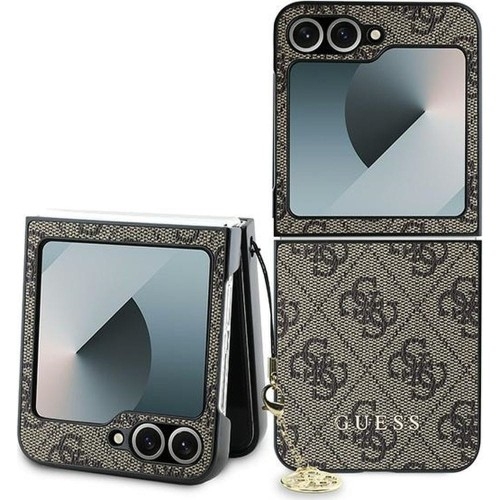 Etui Guess 4G Charms Collection Samsung Galaxy Z Flip6 Wyjątkowa kolekcja z klasycznym wzornictwem Amerykańska firma Guess od wielu lat jest utożsamiania z bardzo dobrą jakością i oryginalnym wzornictwem. Etui z kolekcji 4G Charms wyprodukowane przez firmę CG Mobile na oficjalnej licencji marki Guess jest pozycją dla osób ceniących sobie klasykę i styl. Zaprojektowane z wyjątkową starannością o szczegóły. Wykonane z połączenia przyjemnego w dotyku i twardego poliwęglanu na pleckach oraz elastycznego termopoliuretanu, z którego wykonana została ramka. Pokryte materiałową fakturą Saffiano, która nadaje luksusowego wyglądu. Kolor producenta: Brown (brązowy) Przedmiotem sprzedaży jest samo etui, pozostałe akcesoria widoczne na zdjęciach służą jedynie przedstawieniu jego funkcjonalności. Ochrona tyłu i boków Dobrze dopasowane etui, zachowuje opływowe kształty smartfona. Plecki i boki telefonu są skutecznie zabezpieczone przed zarysowaniami, zabrudzeniem oraz wstrząsami. Wciąż tak samo funkcjonalne Precyzyjne wycięcia zapewniają pełen dostęp do interfejsów i portów, bezpiecznie leżąc w dłoni. Staranne wykończenie oraz zintegrowane osłony przycisków utrzymują nowoczesny i minimalistyczny design. Pewnie leży w dłoni oraz łatwo się zakłada. Przyjemne dla oka dodatki Zewnętrzny wzór 4G, logo Guess w złotym kolorze i przyczepiona subtelna zawieszka - wszystkie te detale razem nadadzą niepowtarzalnego stylu Twojemu urządzeniu, tworząc połączenie kultowych dodatków Guess.