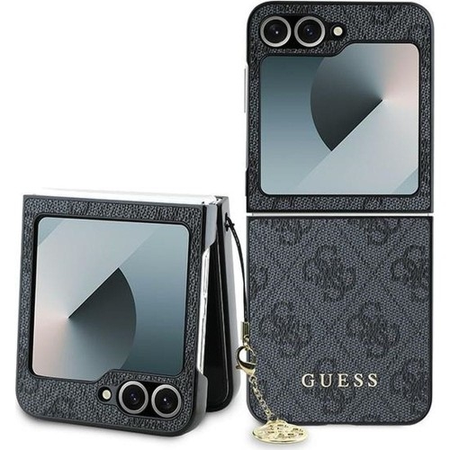 Etui Guess 4G Charms Collection Samsung Galaxy Z Flip6   Wyjątkowa kolekcja z klasycznym wzornictwem Amerykańska firma Guess od wielu lat jest utożsamiania z bardzo dobrą jakością i oryginalnym wzornictwem. Etui z kolekcji 4G Charms wyprodukowane przez firmę CG Mobile na oficjalnej licencji marki Guess jest pozycją dla osób ceniących sobie klasykę i styl. Zaprojektowane z wyjątkową starannością o szczegóły. Wykonane z połączenia przyjemnego w dotyku i twardego poliwęglanu na pleckach oraz elastycznego termopoliuretanu, z którego wykonana została ramka. Pokryte materiałową fakturą Saffiano, która nadaje luksusowego wyglądu. Kolor producenta: Black (czarne) Przedmiotem sprzedaży jest samo etui, pozostałe akcesoria widoczne na zdjęciach służą jedynie przedstawieniu jego funkcjonalności.   Ochrona tyłu i boków Dobrze dopasowane etui, zachowuje opływowe kształty smartfona. Plecki i boki telefonu są skutecznie zabezpieczone przed zarysowaniami, zabrudzeniem oraz wstrząsami.   Wciąż tak samo funkcjonalne Precyzyjne wycięcia zapewniają pełen dostęp do interfejsów i portów, bezpiecznie leżąc w dłoni. Staranne wykończenie oraz zintegrowane osłony przycisków utrzymują nowoczesny i minimalistyczny design. Pewnie leży w dłoni oraz łatwo się zakłada.   Przyjemne dla oka dodatki Zewnętrzny wzór 4G, logo Guess w złotym kolorze i przyczepiona subtelna zawieszka - wszystkie te detale razem nadadzą niepowtarzalnego stylu Twojemu urządzeniu, tworząc połączenie kultowych dodatków Guess.