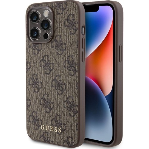 Etui Guess Hard Case 4G Metal Gold Logo Apple iPhone 15 Pro Max Wyjątkowa kolekcja z klasycznym wzornictwem Amerykańska firma Guess od wielu lat jest utożsamiania z bardzo dobrą jakością i oryginalnym wzornictwem. Etui z kolekcji 4G Metal Gold Logo wyprodukowane przez firmę CG Mobile na oficjalnej licencji marki Guess jest pozycją dla osób ceniących sobie klasykę i styl. Zaprojektowane z wyjątkową starannością o szczegóły. Wykonane z połączenia przyjemnego w dotyku i twardego poliwęglanu na pleckach oraz elastycznego termopoliuretanu, z którego wykonana została ramka. Pokryte materiałową fakturą Saffiano, która nadaje luksusowego wyglądu. Kolor producenta: Brown (brązowy) Etui kompatybilne ze szkłami o wymiarach mniejszych niż (dług./szer./przek.): 15,98 x 7,63 x 16,72 cm Przedmiotem sprzedaży jest samo etui, pozostałe akcesoria widoczne na zdjęciach służą jedynie przedstawieniu jego funkcjonalności. Ochrona tyłu i boków Dobrze dopasowane etui, zachowuje opływowe kształty smartfona. Plecki i boki telefonu są skutecznie zabezpieczone przed zarysowaniami, zabrudzeniem oraz wstrząsami. Wciąż tak samo funkcjonalne Precyzyjne wycięcia zapewniają pełen dostęp do interfejsów i portów, bezpiecznie leżąc w dłoni. Staranne wykończenie oraz zintegrowane osłony przycisków utrzymują nowoczesny i minimalistyczny design. Case pewnie leży w dłoni oraz łatwo się zakłada. Przyjemne dla oka dodatki Ta elegancka kolekcja zachwyci nawet najbardziej wyrafinowane gusta. Wierzchnia warstwa etui jest pokryta delikatną ekoskórą, ozdobioną wysokiej jakości printem 4G, nadając jej wyjątkowego charakteru i elegancji. Dodatkowym elementem jest piękna złota naszywka z logiem marki Guess, stanowiąca dowód doskonałej jakości i autentyczności produktów, za które odpowiada ta renomowana marka.