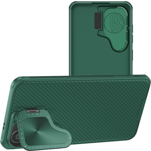 Etui Nillkin CamShield Prop Samsung Galaxy S24 Podwójna ochrona Oryginalne wytrzymałe etui od marki Nillkin z serii CamShield Prop to wykonana z odpornego na zużycie poliwęglanu zbroja dla telefonu, która zminimalizuje skutki codziennych przeciwności losu, takich jak grawitacja przyciągająca smartfona do podłogi czy dziurawe ręce. Do tego chroni podwójnie - bo zarówno plecki urządzenia, jak i sam aparat. Osłona aparatu funkcjonalnie spełnia się jako nóżka, podstawka. Funkcjonalna obudowa - twardy tył z poliwęglanu i elastyczne boki z TPU dla wygodnego zakładania i zdejmowania pokrowca. Kolor producenta: Dark Green Etui kompatybilne ze szkłami o wymiarach mniejszych niż (dług./szer.): 14,39 x 6,78 cm Przedmiotem sprzedaży jest samo etui, pozostałe akcesoria widoczne na zdjęciach służą jedynie przedstawieniu funkcjonalności produktu. Prywatność na zasuwkę Boisz się, że jesteś obserwowany? A może obawiasz się o kondycję obiektywów w telefonie? Niezależnie od powodu, etui z metalową osłoną na aparat to coś w sam raz dla Ciebie. Jeden ruch ręką i po kłopocie, bezpieczne są zarówno soczewki aparatu, jak i Twoja prywatność. Dodatkowo to jedyna w swoim rodzaju nóżka umożliwiająca stabilne ułożenie telefonu w poziomie, solidna metalowa konstrukcja klapki posłuży na długo oraz spełni funkcję 2w1 dla wygody użytkownika. Minimalistyczne wzornictwo Niezwykle uniwersalny wzór przypadnie do gustu nawet najbardziej wybrednym użytkownikom. Dzięki starannie wykonanym wycięciom plecki są idealnie dopasowane. Dodatkowo antypoślizgowa powierzchnia rantów zmniejsza ryzyko wyślizgnięcia się urządzenia z dłoni. A nawet gdyby już upadło - tak jak kanapka, masłem w dół - to nie zderzy się bezpośrednio z podłogą, bo obudowa lekko wystaje ponad krańce telefonu.
