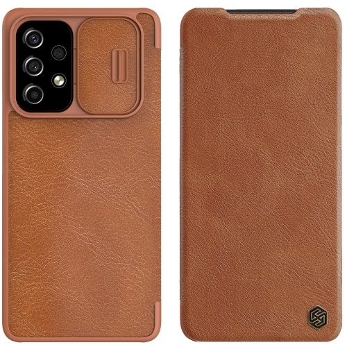 Etui Nillkin QIN Pro Leather Case Samsung Galaxy A73 5G Wysoka jakość Rewelacyjne etui od marki Nillkin. Wykonane z wysokiej jakości przyjaznego dla środowiska, twardego poliwęglanu oraz skóry syntetycznej. Etui Nillkin Qin Pro powstało z myślą o tych, którzy cenią swoją prywatność, wyposażone jest także w przesuwaną osłonę na aparat, dzięki czemu nie musisz się martwić o zarysowania czy zabrudzenia obiektywu. Kolor producenta: Brown (Brązowa) Etui kompatybilne ze szkłami o wymiarach nie przekraczających (dług./szer./przek.): 16,16 x 7,33 x 17,30 cm Kompleksowa ochrona Etui pewnie leży w dłoni, a skóra nadaje eleganckiego wyglądu. Doskonale dopasowane, nie pogrubia znacząco urządzenia i absorbuje lekkie uderzenia oraz chroni przed zarysowaniami. Precyzyjne wycięcia Wycięcia na przyciski zapewniają pełen dostęp do interfejsów. Wycięcie w miejscu głośnika pozwala rozmawiać z zamkniętą klapką. Miękkie i delikatne wnętrze klapki chroni wyświetlacz przed zarysowaniami. Posiada wewnętrzną kieszonkę na kartę lub banknoty. Elegancki design idealnie komponuje się z telefonem.