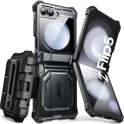 Etui Supcase i-Blason Armorbox (BackSP) Samsung Galaxy Z Flip5 Hybrydowa konstrukcja Oryginalne etui od marki Supcase i-Blason z serii Armorbox charakteryzujące się pancerną budową typu "heavy-duty case" od upadków o taktycznym, stanowczym i wyróżniającym się wyglądzie. Jest stylowe a zarazem wielofunkcyjne, dzięki czemu świetnie sprawdzi się podczas wielu codziennych i wymagających sytuacji Futerał wykonano z połączenia amortyzującego termopoliuretanu oraz mocnego poliwęglanu. Obudowa posiada wbudowaną osłonę na zawias, zintegrowaną rozkładaną podpórkę KickStand i kaburę z obrotowym holsterem umożliwiającym przypięcie całości np. do paska. *Przedmiotem sprzedaży jest samo etui, pozostałe akcesoria widoczne na zdjęciach służą jedynie przedstawieniu jego funkcjonalności. Wersja etui: bez wbudowanej osłony na wyświetlacz wewnętrzny z wbudowaną osłoną na wyświetlacz zewnętrzny ze wbudowaną rozkładaną podstawką KickStand ze zintegrowanym zawiasem ochronnym na zgięcie telefonu. Kolor producenta: Black (czarny) Z czego składa się Armorbox Podstawowa budowa etui składa się z dwóch części: górnego i dolnego panelu typu snap-on, które nakładamy na telefon. Dodatkowo w pudełku znajduje się opcjonalny element w postaci kabury z obrotowym klipsem, którą można zawiesić np. przy pasku i umieszczać w niej w/w etui. Pozwala to wygodnie nosić telefon przy sobie bez zajmowania dłoni, a do tego dodatkowo zabezpieczyć front urządzenia podczas jego nieużywania. Pancerna i wytrzymała ochrona Obudowa oferuje wysoką ochronę przed wstrząsami spełniając, a nawet przekraczając normy wojskowego standardu odporności Mil-Grade. To świetny wybór, który sprawdzi się nie tylko podczas ekstremalnych wycieczek czy sportów, ale także np. w wymagających zawodach, gdzie nieodzownym kryterium jest zabezpieczenie smartfona przed zarysowaniami i uderzeniami z jednoczesnym zachowaniem wygody jego użytkowania. Futerał posiada lekko wystające krawędzie chroniące kamerę i ekran przed zarysowaniami na płaskich powierzchniach, co pozwala na swobodne korzystanie np. z gestów wyciszania. Dowolnie odkładaj telefon na blat biurka bez obaw o porysowanie niezakrytych elementów. Swobodny dostęp Cover posiada wycięcia na przyciski i porty, oraz zapewnia swobodny dostęp do wszystkich interfejsów, oferując niezwykłą funkcjonalność i wygodę w użytkowaniu. Zastosowany materiał nie zakłóca ładowania bezprzewodowego - dotyczy modeli telefonów wyposażonych w tą technologię. Kabura z uchwytem na pasek Zestaw zawiera kaburę z obrotowym holsterem, co dodaje mu funkcjonalności i większej odporności. Jest to świetny dodatek, gdy sytuacja wymaga od nas pełnej swobody ruchowej i wolnych rąk, a potrzebujemy mieć telefon zawsze przy sobie. Wystarczy zaczepić kaburę np. do paska i umieścić w niej podstawowy pokrowiec ekranem do wewnątrz i gotowe. Pionowy Stand Dzięki zintegrowanej podpórce Stand z łatwością ułożysz swojego smartfona w pozycji pionowej dla łatwiejszego przeglądania multimediów. Stojak KickStand łatwo się rozkłada i składa, i stanowi on integralną część futerału, dzięki czemu zawsze jest dostępny w razie potrzeby. Funkcja Ring-Holdera Kompozytowa konstrukcja zapewnia skuteczną ochronę przy minimalnych gabarytach oraz wadze, dzięki czemu etui jest lekkie, smukłe i dobrze leży w dłoni. Dodatkowym atutem jest możliwość użycia podstawki także jako uchwytu na palec, by jeszcze pewniej i bezpieczniej trzymać telefon w ręce.