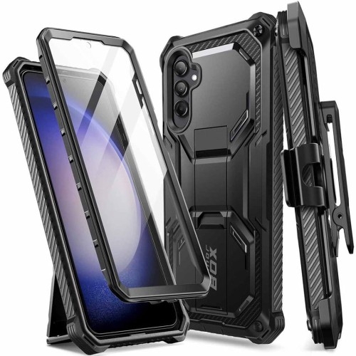 Etui Supcase i-Blason Armorbox (SP) Samsung Galaxy S23 FE 5G Hybrydowa konstrukcja Oryginalne etui od marki Supcase i-Blason z serii Armorbox charakteryzujące się pancerną budową typu "heavy-duty case" od upadków o taktycznym, stanowczym i wyróżniającym się wyglądzie. Jest stylowe a zarazem wielofunkcyjne, dzięki czemu świetnie sprawdzi się podczas wielu codziennych i wymagających sytuacji. Futerał wykonano z połączenia amortyzującego termopoliuretanu oraz mocnego poliwęglanu. Obudowa posiada zintegrowaną rozkładaną podpórkę KickStand, jedną ramkę frontową (z wbudowaną osłoną ekranu), a także kaburę z holsterem, umożliwiającym przypięcie całości np. do paska. Wersja etui z wbudowaną osłoną wyświetlacza. UWAGA: Wersję etui z wbudowaną osłoną ekranu nakładamy bezpośrednio na samo urządzenie, które nie może mieć naklejonych żadnych dodatkowych folii ani szkła. *Przedmiotem sprzedaży jest samo etui, pozostałe akcesoria widoczne na zdjęciach służą jedynie przedstawieniu jego funkcjonalności. Kolor producenta: Black Z czego składa się Armorbox Podstawowa budowa etui składa się z dwóch części: tylnych plecków i przedniej ramki, między które wkładamy telefon i składamy konstrukcję w jedną całość. Dodatkowo w pudełku znajduje się opcjonalny element w postaci kabury z klipsem, którą można zawiesić np. przy pasku i umieszczać w niej w/w etui. Pozwala to wygodnie nosić telefon przy sobie bez zajmowania dłoni, a do tego dodatkowo zabezpieczyć front urządzenia podczas jego nieużywania. Pancerna i wytrzymała ochrona Obudowa oferuje wysoką ochronę przed wstrząsami spełniając, a nawet przekraczając normy wojskowego standardu odporności Mil-Grade. To świetny wybór, który sprawdzi się nie tylko podczas ekstremalnych wycieczek czy sportów, ale także np. w wymagających zawodach, gdzie nieodzownym kryterium jest zabezpieczenie smartfona przed zarysowaniami i uderzeniami z jednoczesnym zachowaniem wygody jego użytkowania. Obudowa posiada lekko wystające krawędzie chroniące kamerę i ekran przed zarysowaniami na płaskich powierzchniach, co pozwala na swobodne korzystanie np. z gestów wyciszania. Dowolnie odkładaj telefon na blat biurka bez obaw o porysowanie niezakrytych elementów. Zaślepka na port ładowania Precyzyjne wycięcia zapewniają swobodny dostęp do wszystkich interfejsów, oferując niezwykłą funkcjonalność i wygodę w użytkowaniu. Cover posiada responsywne, zintegrowane osłony przycisków zachowujące dobrze wyczuwalne kliknięcie, oraz zaślepkę na port ładowania, która zabezpiecza go przed kurzem i brudem. Zastosowany materiał nie zakłóca ładowania bezprzewodowego - dotyczy modeli telefonów wyposażonych w tą technologię. Kabura z uchwytem na pasek Zestaw zawiera kaburę z holsterem, co dodaje mu funkcjonalności i większej odporności. Jest to świetny dodatek, gdy sytuacja wymaga od nas pełnej swobody ruchowej i wolnych rąk, a potrzebujemy mieć telefon zawsze przy sobie. Wystarczy zaczepić kaburę np. do paska i umieścić w niej podstawowy pokrowiec ekranem do wewnątrz i gotowe. Pionowy i poziomy Stand Dzięki zintegrowanej podpórce Stand z łatwością ułożysz swojego smartfona w pozycji poziomej lub pionowej dla łatwiejszego przeglądania multimediów. Stojak KickStand łatwo się rozkłada i składa, i stanowi on integralną część futerału, dzięki czemu zawsze jest dostępny w razie potrzeby. Funkcja Ring-Holdera Kompozytowa konstrukcja zapewnia skuteczną ochronę przy minimalnych gabarytach oraz wadze, dzięki czemu etui jest lekkie, smukłe i dobrze leży w dłoni. Dodatkowym atutem jest możliwość użycia podstawki także jako uchwytu na palec, by jeszcze pewniej i bezpieczniej trzymać telefon w ręce. Warstwa klejąca w miejscu ekranowego czytnika W miejscu ekranowego czytnika linii papilarnych znajduje się warstwa klejąca, która pozwala na dokładne przyleganie zintegrowanej osłony ekranu w tym miejscu, w celu zwiększenia jego czułości dla prawidłowego skanowania odcisku palca. Należy mieć na uwadze, że to miejsce będzie się wizualnie odróżniać od pozostałej powierzchni ochrony wyświetlacza, która nie posiada kleju. UWAGA: Klej w miejscu ekranowego czytnika linii papilarnych jest jednorazowego użytku! Zdejmowanie osłony skutkuje zużyciem się warstwy klejącej i spadkiem jakości działania skanera linii papilarnych, uniemożliwiając jego poprawne działanie w przypadku ponownego montażu.