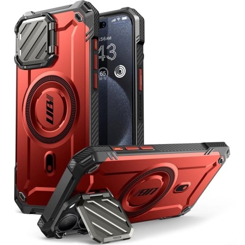 Etui Supcase Unicorn Beetle Mag XT Apple iPhone 15 Pro Pancerne plecki z MagSafe Oryginalne etui od marki Supcase z serii UB Mag XT to stylowe a zarazem pancerne plecki wykonane z połączenia amortyzującego termopoliuretanu oraz mocnego poliwęglanu. Obudowa wyróżnia się zintegrowaną osłonką na aparaty na zawiasie o 180-stopniowym zakresie ruchu. To cover o hybrydowej konstrukcji, który zapewnia doskonałe zabezpieczenie tyłu, boków i tylnych aparatów smartfona oferując wyjątkowo dużą wytrzymałość od wstrząsów oraz lekkość dzięki kompozytowej konstrukcji. Dzięki wbudowanemu pierścieniowi pokrowiec jest kompatybilny z akcesoriami MagSafe. *Przedmiotem sprzedaży jest samo etui, pozostałe akcesoria widoczne na zdjęciach służą jedynie przedstawieniu jego funkcjonalności. Etui kompatybilne ze szkłami o wymiarach mniejszych niż (dług./szer.): 14,35 x 6,75 cm Kolor producenta: Metallic Red (czerwono-czarny) Otwierana osłona na tylne aparaty Pomysłowa osłona na kształt zamykanej i otwieranej klapki osadzona na zawiasie z zakresem ruchu 180° zabezpieczy cała wyspę aparatów w Twoim telefonie. Dzięki niej w prosty sposób ochronisz obiektywy smartfona podczas ich nieużywania. A jeśli zechcesz nagrać film lub zrobić zdjęcie wystarczy otworzyć panel. Producent deklaruje, że wytrzymuje on pracę w ilości ponad 30'000 zgięć. Wygodna podstawka Stand Osłona aparatów dzięki swojej wielofunkcyjności doskonale sprawdzi się także jako podstawka, umożliwiając różne ułożenia telefonu w celu komfortowego przeglądania treści na ekranie. Dlatego z tym etui nie potrzebujesz żadnych dodatkowych stojaków, gdyż zintegrowany Stand przysłuży się Twojej wygodzie w każdej sytuacji. Pancerna i wytrzymała budowa Obudowa oferuje wysoką ochronę przed wstrząsami spełniając normy wojskowego standardu odporności Mil-Grade. To świetny wybór, który sprawdzi się w codziennym użytkowaniu, a do tego zachowuje wygodę w codziennym użytkowaniu. Ochronne ranty Futerał posiada lekko wystające krawędzie chroniące ekran przed zarysowaniami na płaskich powierzchniach, a dodatkowo osłona zamykająca wyspę aparatów również odizoluje tą sekcję od czynników zewnętrznych. Te zalety pozwalają dowolnie odkładać telefon na blat biurka bez obaw o porysowanie niezakrytych elementów. Dostęp do interfejsów Precyzyjne wycięcia zapewniają swobodny dostęp do wszystkich interfejsów, oferując niezwykłą funkcjonalność i wygodę w użytkowaniu. Cover posiada także responsywne, zintegrowane osłony przycisków zachowujące dobrze wyczuwalne kliknięcie. Zastosowany materiał nie zakłóca ładowania bezprzewodowego - dotyczy modeli telefonów wyposażonych w tą technologię. Wygodnie leży dłoni Ergonomiczna konstrukcja zapewnia skuteczną ochronę przy niewielkiej wadze, dzięki czemu etui jest lekkie i dobrze leży w dłoni. Spójna i przemyślana całość sprawia, że telefon pewnie i bezpiecznie trzyma się w ręce. Kompatybilność z MagSafe Etui posiada wbudowany pierścień magnetyczny, który umożliwia swobodne korzystanie z wszelkiej gamy akcesoriów zgodnych z mocowaniem w systemie MagSafe bez potrzeby zdejmowania futerału. Seria Unicorn Beetle Mag XT W poniższej prezentacji producent przedstawił funkcjonalne zalety serii Unicorn Beetle Mag XT, co pozwoli lepiej zapoznać się pokrowcem.