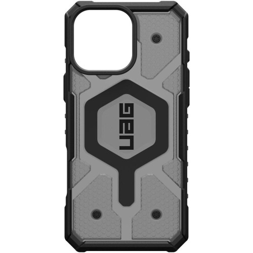 Etui Urban Armor Gear Pathfinder Clear MagSafe Apple iPhone 16 Pro Max Pokrowiec od obieżyświatów dla obieżyświatów! Hej! Poszukiwaczu przygód! Szukasz niekonwencjonalnego etui chroniącego Twój smartfon podczas Twoim wojaży? Etui od marki Urban Armor Gear z serii Pathfinder Clear MagSafe sprawdzi się doskonale! Wykonane z połączenia wytrzymałych materiałów - TPU oraz miękkiego poliwęglanu o strukturze plastra miodu. Dwuczęściowa konstrukcja składa się z ramki i plecków, wspierając przy tym ładowanie bezprzewodowe i technologię MagSafe. *Przedmiotem sprzedaży jest samo etui, pozostałe akcesoria widoczne na zdjęciach służą jedynie przedstawieniu jego funkcjonalności. Kolor producenta: Ash (przydymiony (półprzezroczysty) z czarną ramką) Etui kompatybilne ze szkłami o wymiarach mniejszych niż (długość x szerokość): 15,98 x 7,44 cm Łatwy dostęp do portów i przycisków Zapewniają swobodny dostęp do wszystkich interfejsów. Niezwykle funkcjonalne i wygodne w użytkowaniu. Posiada precyzyjne wycięcia i responsywne zintegrowane przyciski - chronią przed kurzem i pyłem i wyglądają przy tym dobrze! Pancerne i wytrzymałe Etui spełnia wymogi standardu odporności Military Grade. Wzór heksagonów umieszczony od wewnętrznej strony służą dodatkowej ochronie w razie upadku. Lekko wystające krawędzie chronią kamerę i ekran przed zarysowaniami na płaskich powierzchniach. Kompozytowa konstrukcja Zapewnia skuteczną ochronę przy minimalnych gabarytach oraz wadze, dzięki czemu jest lekkie i smukłe. Posiada specjalną powłokę odporną na ścieranie i odciski palców. Nie pogrubia znacząco urządzenia. Jest maksymalnie cienkie dla tego typu konstrukcji, dzięki czemu zapewnia solidną ochronę, praktyczną lekkość i smukły wygląd. Kompatybilność z MagSafe UAG Pathfinder Clear posiada specjalny pierścień magnetyczny, który pozwala na kompatybilność ze wszelkimi akcesoriami z serii MagSafe. Dzięki temu pozwala ona zachować pełną funkcjonalność smartfona w zakresie ładowania bezprzewodowego, gdyż z wykorzystaniem magnetycznego mocowania Twoja ładowarka indukcyjna z MagSafe zawsze będzie przylegać do telefonu w prawidłowym miejscu