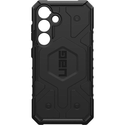 Etui Urban Armor Gear Pathfinder MagSafe Samsung Galaxy S24 Wygoda w używaniu Oryginalne, pancerne etui od marki Urban Armor Gear z serii Pathfinder, wykonane z połączenia poliwęglanu i termopoliuretanu dla zapewnienia jak najlepszej ochrony. Etui wspiera ładowanie bezprzewodowe MagSafe. Etui kompatybilne ze szkłami o wymiarach mniejszych niż (dług./szer./przek.): 15,63 x 7,35 cm Kolor producenta: Black (czarny) Przedmiotem sprzedaży jest samo etui. Pozostałe elementy przedstawione na zdjęciach służą jedynie ukazaniu funkcjonalności produktu. Łatwy dostęp do interfejsów Zapewnia swobodny dostęp do wszystkich interfejsów. Niezwykle funkcjonalne i wygodne w użytkowaniu. Posiada precyzyjne wycięcia i responsywne zintegrowane przyciski. Pancerne i wytrzymałe Wysoka odporność na uderzenia i wstrząsy. Pokrowiec jest zgodny z wymogami standardu odporności Military Grade. Ponadto wzmocnione narożniki zapewniają dodatkową ochronę w razie upadku. Doskonale dopasowane Dobrze leży w dłoni, a lekko wystające krawędzie chronią kamerę i ekran przed zarysowaniami na płaskich powierzchniach. Kompozytowa konstrukcja Zapewnia skuteczną ochronę przy minimalnych gabarytach oraz wadze, dzięki czemu jest lekkie i dość smukłe jak na pancerne etui. Posiada specjalną powłokę o wysokiej odporności na ścieranie i pozostawianie odcisków palców. Etui nie pogrubia znacząco urządzenia. Jest maksymalnie cienkie dla tego typu konstrukcji, dzięki czemu zapewnia solidną ochronę, praktyczną lekkość i smukły wygląd. Kompatybilność z MagSafe UAG Pathfinder MagSafe posiada specjalny pierścień magnetyczny, który pozwala na kompatybilność ze wszelkimi akcesoriami z serii MagSafe. Dzięki temu pozwala ona zachować pełną funkcjonalność smartfona w zakresie ładowania bezprzewodowego, gdyż z wykorzystaniem magnetycznego mocowania Twoja ładowarka indukcyjna z MagSafe zawsze będzie przylegać do telefonu w prawidłowym miejscu.