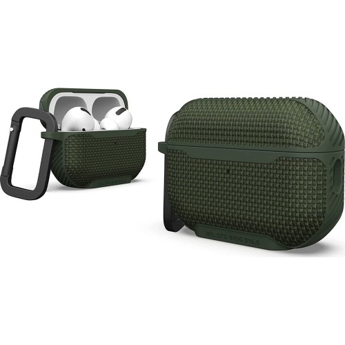 Etui Urban Armor Gear UAG Ballistic ARMR Apple AirPods Pro 2 Wykonanie wysokiej jakości Kolekcja Metropolis to stylowe i wyrafinowane akcesoria, które zapewniają najlepszą ochronę. Etui zostało wykonane z termoplastycznego popoliuretanu oraz z mocnego materiału Ballistic (ARMR) charakteryzującym się wysoką odpornością na ścieranie, dzięki czemu Twoje urządzenie zyskuje elegancki, jak również pancerny charakter. Kolor producenta: Olive (ciemnozielone ) Wojskowy standard odporności Case ochroni słuchawki przed uderzeniami, upadkami i zadrapaniami bez zwiększania objętości. Pokrowiec jest zgodny z wymogami standardu odporności Military Grade. Odpinany karabińczyk Wygodny odczepiany karabińczyk, ułatwia przypięcie słuchawek do ulubionego plecaka, torby lub paska. Urządzenie w etui bez problemu otwiera się i zamyka. Stylowa powierzchnia TPU + Fabric inlay Seria Metropolis to nie tylko stylowy dodatek do słuchawek, ale również specjalna, chroniąca powierzchnia, która jest odporna na ścieranie, dzięki czemu etui będzie służyć świeżym wyglądem jak najdłużej. Case posiada wycięcie na port Lightning. Nie zakrywa diody LED. Pełna kompatybilność Etui jest w pełni funkcjonalne, łatwe w montażu. Kompatybilne z ładowaniem bezprzewodowym. Obudowa posiada również wbudowany moduł magnesu, który zapewnia kompatybilność z ładowaniem MagSafe.