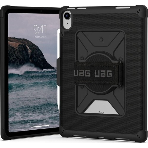 Etui Urban Armor Gear Metropolis Hand Strap Apple iPad 10.9" 10 gen. 2022 (A2696, A2757, A2777) Pancerne i lekkie etui Oryginalne etui od marki Urban Armor Gear z serii Metropolis Hand Strap. Wykonane z wysokiej jakości wytrzymałych i ultra lekkich tworzyw, z gumowanym wykończeniem zapewniającym stabilność i dobry chwyt. W pełni funkcjonalne, posiada uchwyt na rysik. Wersja z obrotowym uchwytem mocowanym na rękę na rzep. Model ten został wydany przez producenta w wersji Bulk (zapakowany w folii ochronnej). Etui kompatybilne ze szkłami o wymiarach mniejszych niż (dług./szer.): 24,48 x 17,58 cm Przedmiotem sprzedaży jest samo etui, pozostałe akcesoria widoczne na zdjęciach służą jedynie przedstawieniu jego funkcjonalności. Kolor producenta: Black Pewny chwyt urządzenia Dzięki zastosowaniu technologi Tactile Grip nie musisz się martwić o wyślizgnięcie etui z rąk nawet gdy są wilgotne. Posiada specjalną powłokę o wysokiej odporności na ścieranie i minimalizującą pozostawianie odcisków palców. Dodatkowym atutem etui zapewniającym solidny chwyt jest uchwyt w formie rzepu na dłoń, który obraca się wraz z urządzeniem o 360 stopni dla komfortu użytkowania. Pancerne i wytrzymałe Wysoka odporność na uderzenia i wstrząsy. Spełnia wojskowy standard odporności Military Grade. Wzmocnione narożniki zapewniają ochronę w razie upadku. Kompozytowa konstrukcja Dobrze leży w dłoni, a krawędzie chronią kamerę i ekran przed zarysowaniami na płaskich powierzchniach. Wewnętrzna struktura plastrów miodu dodaje większej odporności, pozwalając tym samym na zminimalizowanie grubości i wagi etui. Cienkie i lekkie Zapewnia skuteczną ochronę przy minimalnych gabarytach oraz wadze, dzięki czemu jest lekkie i smukłe. Nie pogrubia znacząco urządzenia. Jest maksymalnie cienkie dla tego typu konstrukcji, dzięki czemu zapewnia solidną ochronę, praktyczną lekkość i smukły wygląd. Komfort użytkowania Etui zostało zaprojektowane z myślą o maksymalnej funkcjonalności i wygodzie użytkowania. Posiada ono dedykowane miejsce na rysik, co umożliwia jego bezpieczne przechowywanie i łatwy dostęp w każdej chwili. To praktyczne rozwiązanie sprawia, że rysik jest zawsze pod ręką, gotowy do użycia, niezależnie od tego, czy jesteś w pracy, szkole, czy w podróży.