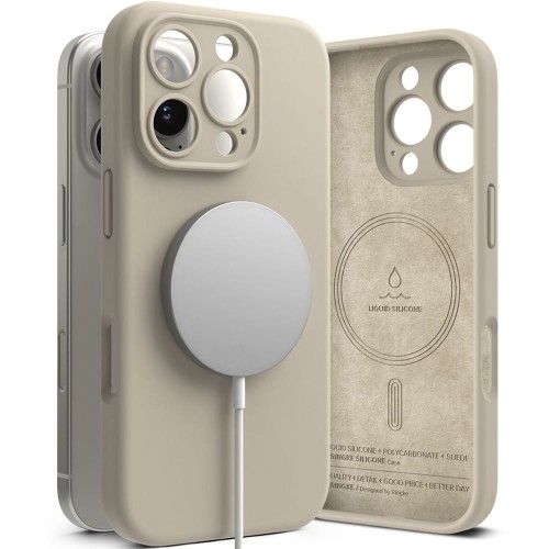 Ringke Silicone Magnetic Apple iPhone 16 Pro Max   Smukłe i wytrzymałe etui Nowe etui od producenta Ringke z serii Silicone Magnetic to niesamowicie cienkie i lekkie plecki dla Twojego smartfona! Wykonane zostało z delikatnego i wytrzymałego materiału o termoplastycznych właściwościach. Idealnie wpasowuje się w kształt telefonu, nie utrudniając przy tym dostępu do portów zewnętrznych i przycisków. Delikatnie podniesione krawędzie chronią przed zarysowaniami na powierzchniach płaskich. Umożliwia ładowanie bezprzewodowe bez zdejmowania obudowy! Kolor producenta: Stone (beżowy) Etui kompatybilne ze szkłami o wymiarach mniejszych niż (dług./szer): 16,03 x 7,50 cm Przedmiotem sprzedaży jest samo etui, pozostałe akcesoria widoczne na zdjęciach służą jedynie przedstawieniu jego funkcjonalności.   Obudowa przyjemna w dotyku Termo-wytrzymały silikonowy materiał gwarantuje przyjemne doznania w kontakcie z etui. Na dodatek zapewnia przy tym pewny chwyt. Smukłe i wygodne, etui gwarantuje jednocześnie wysoki poziom bezpieczeństwa, spełniając przy tym wojskowy standard odporności Military Grade!   Łatwy dostęp do interfejsów case'a Posiada zintegrowane osłony na przyciski i wycięcia na porty. Oferuje pełen dostęp do interfejsów, zapewniając najwyższy komfort użytkowania. Etui również chroni ekran oraz wyspę aparatu na płaskich powierzchniach dzięki podniesionym krawędziom. Po jednej stronie znajdują się specjalne wycięcia umożliwiające zamontowanie smyczy.   Ładowanie bezprzewodowe Plecki są tak skonstruowane, żeby nie zakłócać udogodnień takich jak ładowanie bezprzewodowe! Korzystaj z uśmiechem na twarzy!   Kompatybilne z MagSafe Wewnątrz etui znajduje się wbudowany pierścień magnetyczny zapewniający kompatybilność z akcesoriami MagSafe. Dzięki niemu nadal możesz korzystać z posiadanej ich gamy bez potrzeby zdejmowania pokrowca.