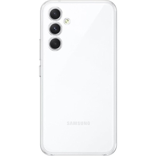 Etui Samsung Clear Case Samsung Galaxy A54 5G   Stylowo prześwitujące Subtelne i smukłe etui od marki Samsung z serii Clear Cover. Zapewnia ochronę przed zarysowaniem i zabrudzeniem. Wykonane z elastycznego TPU.  Wersja kolorystyczna: Transparent Etui kompatybilne ze szkłami o wymiarach nie przekraczających (dług./szer./przek.): 15,52 x 7,39 x 16,60 cm     Brak efektu przywierania etui Zastosowana prawie niewidoczna kropkowana wewnętrzna powierzchnia zapobiega przyklejaniu się etui do plecków, co niweluje nieestetyczny wygląd mokrej plamy w miejscu przylegania klasycznych etui tego typu.     Smukłe i lekkie Ergonomiczny kształt i zastosowanie lekkiego materiału sprawia, że etui jest niezwykle lekkie i nie pogrubia znacząco urządzenia.       Precyzyjne wycięcia Zapewniają swobodny dostęp do wszystkich interfejsów i portów. Posiada zintegrowane osłony na przyciski. Niezwykle funkcjonalne i wygodne w użytkowaniu.      Dobrze dopasowane  Pewnie leży w dłoni, jest łatwy w montażu i demontażu. Eleganckie etui dobrze dopasowane do urządzenia.