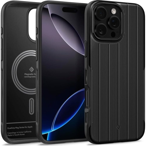 Etui Spigen Caseology Dual Grip Mag Apple iPhone 16 Pro Ochronne i stylowe etui Szukasz etui, które połączy elegancję z wytrzymałością? Caseology Dual Grip Mag to doskonałe rozwiązanie. Dzięki dwuwarstwowej konstrukcji, plecki z poliwęglanu i boki z termopoliuretanu chronią Twój smartfon przed upadkami, zarysowaniami i brudem. Co więcej, podwyższone krawędzie wokół aparatu i ekranu zapewniają dodatkową ochronę tych kluczowych elementów. Dodatkowo dzięki wbudowanemu pierścieniowi magnetycznemu jest kompatybilny z akcesoriami z serii Apple MagSafe. Caseology to kolejna marka-córka sukcesywnie rozwijającej się firmy Spigen, nastawiona na projektowanie nowych linii wysokiej jakości akcesoriów dla urządzeń GSM. Wszystkie te akcesoria produkowane są z niezwykłą starannością, z zastosowaniem najnowszych technologii i nowoczesnego design'u. *Przedmiotem sprzedaży jest samo etui, pozostałe akcesoria widoczne na zdjęciach służą jedynie przedstawieniu jego funkcjonalności. Kolor producenta: Onyx Black (czarny) Etui kompatybilne ze szkłami o wymiarach mniejszych niż (długość x szerokość): 14,55 x 6,72 cm Podwójnie przyczepne Stylowe paski na bokach i tyle etui nie tylko przyciągają wzrok, ale również znacząco poprawiają przyczepność urządzenia. Teraz możesz cieszyć się pewnością, że Twój smartfon nie wyślizgnie się z dłoni. Ponadto cover ten zapewnia wysoką ochronę dzięki technologii poduszek powietrznych w narożnikach Air Space Technology, amortyzujących wstrząsy w codziennym użytkowaniu. Kompatybilne z serią Apple MagSafe Wewnątrz etui znajduje się wbudowany pierścień magnetyczny, który sprawia, że korzystanie z dodatkowych akcesoriów staje się wygodniejsze niż kiedykolwiek. Wzmocniona poliuretanowa podkładka zapewnia stabilność i zapobiega poluzowaniu się magnesów, co sprawia, że ładowanie bezprzewodowe oraz korzystanie z uchwytów MagSafe jest niezawodne. Smukła i gustowna budowa Niezwykle cienkie oraz lekkie etui, które nie dodaje zbędnej objętości, zachowując smukły profil. Minimalistyczny design prezentuje się znakomicie, a jego wykończenie ogranicza pozostawianie odcisków palców na futerale. Dodatkowo kropkowany wzór po bokach etui zapewnia komfortowe i bezpieczne trzymanie, idealne do codziennego użytku. Pełny dostęp do interfejsów Etui posiada ergonomiczny kształt oraz jest świetnie dopasowane do urządzenia. Zintegrowane osłony na przyciski i wycięcia na porty zapewniają pełen dostęp do interfejsów, oferując wysoki komfort użytkowania. Zastosowany materiał nie zakłóca ładowania bezprzewodowego - dotyczy modeli telefonów wyposażonych w tę technologię.