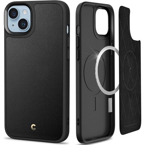 Etui Spigen Cyrill Kajuk MagApple iPhone 14 Plus Elegancka eko-skóra z MagSafeHybrydowe etui marki Spigen z serii Cyrill Kajuk Mag, wykonane zostało z połączenia termopoliuretanowej ramki oraz wytrzymałej poliwęglanowej tylnej osłony wykończonej warstwą eleganckiej, syntetycznej eko-skóry PU. Takie połączenie świetnie sprawdzi się w codziennej ochronie urządzenia, a do tego skórzana faktura na pleckach pokrowca nadaje gustownego i ekskluzywnego wyglądu. Dzięki wbudowanemu pierścieniowi magnetycznemu jest kompatybilny z akcesoriami z serii Apple MagSafe.Cyrill to kolejna marka-córka sukcesywnie rozwijającej się firmy Spigen, nastawiona na projektowanie nowych linii wysokiej jakości akcesoriów dla urządzeń gsm. Wszystkie te akcesoria produkowane są z niezwykłą starannością, z zastosowaniem najnowszych technologii i nowoczesnego design'u.Kolor producenta: Black (czarny)Etui kompatybilne ze szkłami o wymiarach nieprzekraczających (dług./szer./przek.): 15,73 x 7,50 x 16,71 cm Wzmocniona ochronaFuterał zapewnia wysoką ochronę dzięki zastosowaniu przemyślanych technologii, dających wiele korzyści w codziennym użytkowaniu:chroni tył i boki przed zabrudzeniami i zarysowaniamidzięki zastosowaniu TPU pewnie leży w dłonitechnologia poduszek powietrznych w narożnikach Air Cushion® amortyzuje wstrząsylekko wystające ranty chronią ekran i kamerę na płaskich powierzchniachwnętrze wyłożone warstwą miękkiej mikrofibry dodatkowo chroni plecki urządzeniaTo zgrabny i lekki cover, który nie dodaje zbędnej objętości, zachowując smukły profil smartfona. Skórzane wykończenieLuksusowego i wystawnego szyku niewątpliwie nadaje staranne wykończenie plecków syntetyczną eko-skórą. Ich elegancka faktura jest przyjemna w dotyku i świetnie imituje skórzany wzór, który od zawsze kojarzy się z ekskluzywnym wyglądem.To doskonały futerał dla tych, którzy lubią wytworną klasykę z zachowaniem minimalistycznej i subtelnej bryły obudowy. Z pełnym dostępem do interfejsówEtui posiada ergonomiczny kształt oraz jest świetnie dopasowane do urządzenia. Zintegrowane osłony na przyciski i wycięcia na porty zapewniają pełen dostęp do interfejsów, oferując wysoki komfort użytkowania. Kompatybilne z serią Apple MagSafeWewnątrz etui znajduje się wbudowany pierścień magnetyczny zapewniający kompatybilność z akcesoriami z serii Apple MagSafe. Dzięki niemu nadal możesz korzystać z posiadanej ich gamy bez potrzeby zdejmowania pokrowca.