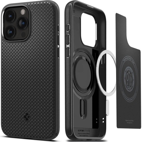 Etui Spigen Mag Armor Apple iPhone 15 Pro Wysoka ochrona + MagSafe Nowoczesny futerał od marki Spigen z serii Mag Armor. Hybrydowe etui o matowym wykończeniu, wykonane z połączenia termoplastycznego poliuretanu oraz poliwęglanu zapewnia doskonałą ochronę na wysokim poziomie. Dzięki wbudowanemu pierścieniowi magnetycznemu pokrowiec jest kompatybilny z akcesoriami z serii Apple MagSafe. *Przedmiotem sprzedaży jest samo etui, pozostałe akcesoria widoczne na zdjęciach służą jedynie przedstawieniu jego funkcjonalności. Kolor producenta: Matte Black Etui kompatybilne ze szkłami o wymiarach mniejszych niż (długość x szerokość): 14,49 x 6,79 x 15,19 cm Hybrydowa konstrukcja PC+TPU Hybrydowa konstrukcja PC+TPU w połączeniu z zastosowanymi technologiami i certyfikatami pozwala skutecznie chronić urządzenie przed zarysowaniami i uszkodzeniem, zapewniając bezpieczeństwo smartfona podczas jego użytkowania. Military Grade - etui spełnia wojskowe standardy odporności Air Cushion Technology - poduszki powietrzne w narożnikach świetnie amortyzują wstrząsy od uderzeń i upadków Lekko podwyższone ranty - chronią aparat i wyświetlacz na płaskich powierzchniach Kompatybilne z serią Apple MagSafe Wewnątrz etui znajduje się wbudowany pierścień magnetyczny zapewniający kompatybilność z akcesoriami z serii Apple MagSafe. Dzięki niemu nadal możesz korzystać z posiadanej ich gamy bez potrzeby zdejmowania pokrowca. Swobodny dostęp do interfejsów Precyzyjne wycięcia i doskonale zintegrowane osłony na przyciski zapewniają swobodny dostęp do wszystkich interfejsów. Etui jest niezwykle funkcjonalne i wygodne w użytkowaniu, świetnie komponując się z telefonem. Smukła i lekka konstrukcja Spigen Mag Armor to pokrowiec o lekkiej i smukłej budowie, który zachowuje oryginalne kształty urządzenia bez dodawania zbędnej objętości. Wygodnie i pewnie leży w dłoni, a matowa powierzchnia minimalizuje pozostawianie odcisków palców czy innych zabrudzeń.