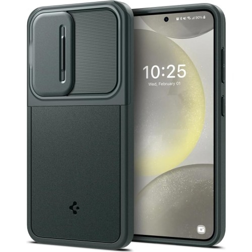Etui Spigen Optik ArmorSamsung Galaxy S24 Cover z zaślepką na wyspę aparatówNowoczesne etui od marki Spigen z serii Optik Armor charakteryzujące się mocną, poliwęglanową osłoną na wyspę aparatów urządzenia z przesuwnym panelem, pozwalającym na całkowite zakrycie sekcji obiektywów dla jeszcze większej ochrony kamer.Hybrydowy cover zapewnia wysoką ochronę przy zachowaniu niewielkiej grubości, łącząc w sobie termopoliuretanową obudowę o świetnych właściwościach amortyzacyjnych z poliwęglanową osłoną w miejscu aparatów.*Przedmiotem sprzedaży jest samo etui, pozostałe akcesoria widoczne na zdjęciach służą jedynie przedstawieniu jego funkcjonalności.Kolor producenta: Abyss Green (zielony)Etui kompatybilne ze szkłami o wymiarach mniejszych niż (długość x szerokość): 14,39 x 6,69 cm Hybrydowa ochrona: PC + TPUZastosowana technologia Air Cushion® - czyli poduszki powietrzne w narożnikach w połączeniu z hybrydową budową pokrowca zapewniają wysoką amortyzację wstrząsów, zabezpieczając Twój telefon przed zarysowaniami i skutkami od uderzeń.To futerał pełen zalet, który z powodzeniem spełnia wymogi standardu odporności Mil-Grade. Przesuwna osłona dla sekcji obiektywówObudowa Optik Armor charakteryzuje się świetnym rozwiązaniem w postaci zintegrowanej osłony na sekcję aparatów, dzięki której Twoje obiektywy będą dodatkowo chronione kiedy ich nie używasz. Wygodny, przesuwny panel z łatwością obsługuje się jednym, prostym ruchem palca, w celu zabezpieczenia całej wyspy aparatów. Lekka i smukła budowaTo wyjątkowo lekkie i smukłe etui, które nie dodaje zbędnej wagi urządzeniu, zapewniając mu codzienną ochronę przed zarysowaniami. Skutecznie chroni tył i boki smartfona, a lekko wystające ranty chronią sekcję aparatów i ekran przed zarysowaniami na płaskich powierzchniach. Dzięki temu Twój wyświetlacz będzie całkowicie bezpieczny podczas odkładania telefonu ekranem w dół, zatem korzystaj swobodnie z gestów wyciszania, oraz nie martw się o swoje obiektywy odkładając telefon na blat biurka. Osłony na przyciskiPrecyzyjne wycięcia zapewniają swobodny dostęp do wszystkich interfejsów smartfona, dzięki czemu całość jest niezwykle funkcjonalna i wygodna w użytkowaniu. Cover posiada także zintegrowane osłony na przyciski, które są responsywne i zachowują dobrze wyczuwalne kliknięcie. Dobrze trzyma się w dłoniDzięki ramce z TPU futerał wygodnie i pewnie leży w dłoni, a do tego łatwo się zakłada jak i zdejmuje. Zastosowany materiał nie zakłóca ładowania bezprzewodowego - dotyczy modeli telefonów wyposażonych w tą technologię.