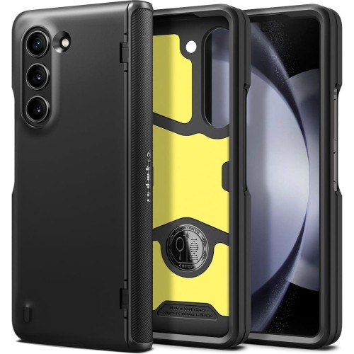Etui Spigen Slim Armor Pro Samsung Galaxy Z Fold5 Smukły, pancerny design Stylowe etui od marki Spigen z serii Slim Armor Pro wyróżniające się trójwarstwową budową o smukłym, zaokrąglonym profilu. Do tego wyposażone jest w zintegrowaną osłonę chroniącą zawias Twojego składanego smartfona. Hybrydowy cover łączy w sobie wewnętrzną warstwę z termoplastycznego poliuretanu oraz zewnętrzny panel z twardego poliwęglanu. Dodatkowo wnętrze zostało uzupełnione o cienką warstwę pianki redukującej wstrząsy, jednak pomimo pancernej konstrukcji obudowa zachowuje stylowy wygląd i doskonale się prezentuje w codziennym użytkowaniu. *Przedmiotem sprzedaży jest samo etui, pozostałe akcesoria widoczne na zdjęciach służą jedynie przedstawieniu jego funkcjonalności. Kolor producenta: Black Wzmocniona ochrona: PC + TPU + pianka Zastosowana technologia Air Cushion® - czyli poduszki powietrzne w narożnikach, oraz cienka warstwa specjalnej pianki wewnątrz w połączeniu z hybrydową budową pokrowca stanowią korzystny zestaw ochronny dla Twojego urządzenia, który zdecydowanie polepsza amortyzację wstrząsów, by jeszcze lepiej zabezpieczyć Twój telefon przed zarysowaniami i skutkami od uderzeń. Niezwykle lekka pianka stanowi dodatkową warstwę ochronną, świetnie rozpraszając wstrząsy, i nie dodając przy tym zbędnej wagi pokrowcowi, co w połączeniu z pozostałymi zaletami sprawia, że futerał z powodzeniem spełnia wymogi standardu odporności Mil-Grade. Ochrona na zawias Semi-Auto Sliding Tech - etui na łączeniu zostało wyposażone w dopasowaną i funkcjonalną osłonkę, która chroni zawias Twojego telefonu przed zarysowaniami, dzięki czemu doskonale współgra z całym urządzeniem. Lekka i smukła budowa To wyjątkowo lekkie i smukłe etui, które nie dodaje zbędnej wagi urządzeniu, zapewniając mu codzienną ochronę przed zarysowaniami. Skutecznie chroni tył i boki smartfona, a lekko wystające ranty chronią sekcję aparatów i ekran przed zarysowaniami na płaskich powierzchniach. Dzięki temu Twój wyświetlacz będzie całkowicie bezpieczny podczas odkładania telefonu ekranem w dół, zatem korzystaj swobodnie z gestów wyciszania, oraz nie martw się o swoje obiektywy odkładając telefon na blat biurka. Wycięcia na przyciski Precyzyjne wycięcia na sekcję przycisków i porty zapewniają swobodny dostęp do wszystkich interfejsów smartfona, dzięki czemu całość jest niezwykle funkcjonalna i wygodna w użytkowaniu. Dobrze trzyma się w dłoni Dzięki ramce z TPU futerał wygodnie i pewnie leży w dłoni, a do tego łatwo się zakłada jak i zdejmuje. Zastosowany materiał nie zakłóca ładowania bezprzewodowego - dotyczy modeli telefonów wyposażonych w tą technologię.