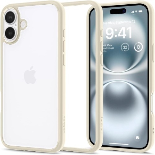 Etui Spigen Ultra HybridApple iPhone 16 Plus Hybrydowa konstrukcjaHybrydowe etui od marki Spigen z serii Ultra Hybrid to ceniony i chętnie wybierany wariant przez wielu użytkowników. Cover wykonany został z połączenia termoplastycznej poliuretanowej ramki oraz wytrzymałej poliwęglanowej tylnej osłony. Jednoczęściowa konstrukcja typu "plecki" zapewnia doskonałą ochronę w codziennym użytkowaniu. Ergonomiczna budowa sprawia, że całość świetnie leży w dłoni oferując wygodny i pewny chwyt. Smukły design z przezroczystym tyłem prezentuje oryginalny wygląd Twojego urządzenia.*Przedmiotem sprzedaży jest samo etui, pozostałe akcesoria widoczne na zdjęciach służą jedynie przedstawieniu jego funkcjonalności.Kolor producenta: Mute Beige (kolor etui: przezroczysty / kolor ramki: beżowy)Etui kompatybilne ze szkłami o wymiarach mniejszych niż (długość x szerokość): 15,77 x 7,45 cm Lekka i smukła ochronaTo wyjątkowo lekkie i smukłe etui, które nie pogrubia znacznie urządzenia, zapewniając mu codzienną ochronę przed zarysowaniami. Skutecznie chroni tył i boki smartfona, a lekko wystające ranty chronią sekcję aparatów i ekran przed zarysowaniami na płaskich powierzchniach. Dzięki temu Twój wyświetlacz będzie całkowicie bezpieczny podczas odkładania telefonu ekranem w dół, zatem korzystaj swobodnie z gestów wyciszania, oraz nie martw się o swoje obiektywy odkładając telefon na blat biurka. Transparentny designStylowy design charakteryzuje się przezroczystym panelem na pleckach o długotrwałej przejrzystości, dzięki czemu Twoje urządzenie zyskuje na dodatkowej ochronie, a jednocześnie pozostawia na widoku wiele ze swojego oryginalnego wyglądu.Dodatkowym atutem przezroczystego tyłu jest możliwość dowolnej personalizacji tej części obudowy, wystarczy wsunąć pod nią ulubione zdjęcia, stickery, itp. by urozmaicić wygląd urządzenia na swój własny i oryginalny sposób. Osłony na przyciskiPrecyzyjne wycięcia zapewniają swobodny dostęp do wszystkich interfejsów smartfona, dzięki czemu całość jest niezwykle funkcjonalna i wygodna w użytkowaniu. Cover posiada także zintegrowane osłony na przyciski, które są responsywne i zachowują dobrze wyczuwalne kliknięcie. Wzmocnione narożnikiEtui zapewnia solidną ochronę przy minimalnych gabarytach oraz wadze podczas upadków. Dzięki technologii Air Cushion®, czyli poduszek powietrznych umiejscowionych w narożnikach, skutecznie amortyzuje wstrząsy od upadków, spełniając wymogi standardu odporności Mil-Grade. Dobrze trzyma się w dłoniDzięki ramce z TPU futerał wygodnie i pewnie leży w dłoni, a do tego łatwo się zakłada jak i zdejmuje. Zastosowany materiał nie zakłóca ładowania bezprzewodowego - dotyczy modeli telefonów wyposażonych w tą technologię.