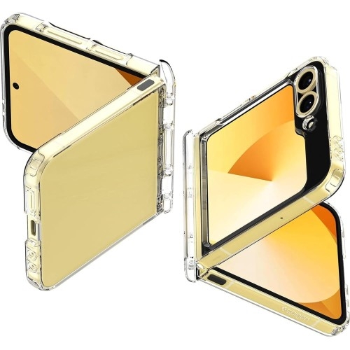 Etui Spigen Ultra Hybrid Pro Samsung Galaxy Z Flip6 Hybrydowa konstrukcja Nowoczesne etui od marki Spigen z serii Ultra Hybrid Pro wykonane zostało z połączenia wysokiej jakości termoplastycznego poliuretanu oraz trwałego poliwęglanu. Gwarantuje wytrzymałość na najwyższym poziomie, przy zachowaniu minimalistycznego wyglądu. To wyjątkowe rozwiązanie dla wszystkich, którzy pragną połączyć elegancki design z najwyższą jakością ochrony. *Przedmiotem sprzedaży jest samo etui, pozostałe akcesoria widoczne na zdjęciach służą jedynie przedstawieniu jego funkcjonalności Kolor producenta: Crystal Clear (przezroczyste) Doskonale dopasowane Konstrukcja pokrowca została zaprojektowana z myślą o wygodzie użytkowania. Ergonomiczna budowa sprawia, że etui doskonale leży w dłoni, oferując pewny chwyt i komfort podczas korzystania z telefonu. Smukły design z przezroczystym tyłem eksponuje oryginalny wygląd Twojego urządzenia, nie dodając zbędnej objętości. Trwała przejrzystość Przezroczysty panel z tyłu etui gwarantuje długotrwałą przejrzystość, dzięki czemu Twój smartfon zawsze wygląda jak nowy. Dodatkowo, lekko wystające ranty skutecznie chronią aparat i ekran przed zarysowaniami na płaskich powierzchniach. Precyzyjne wycięcia Nie musisz rezygnować z pełnej funkcjonalności swojego urządzenia. Etui Spigen Ultra Hybrid Pro zapewnia swobodny dostęp do wszystkich portów i przycisków, a jego specjalne wycięcia są perfekcyjnie dopasowane. Co więcej, etui nie wpływa na działanie ładowania bezprzewodowego ani funkcji PowerShare - dotyczy modeli telefonów wyposażonych w tą technologię. Konstrukcja zawiasów Specjalna konstrukcja zawiasów wspiera każde zagięcie telefonu, zapewniając jednocześnie jego pełną ochronę. Ciesz się pięknem i innowacyjnością swojego urządzenia, mając pewność, że jest odpowiednio zabezpieczony. Technologia Air Cushion Bezpieczeństwo Twojego urządzenia to dla nas priorytet. Dzięki zastosowanej technologii Air Cushion, czyli specjalnym poduszkom powietrznym w narożnikach, etui skutecznie amortyzuje wstrząsy i chroni telefon podczas upadków.