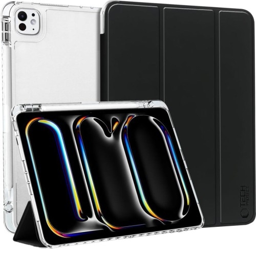 Etui Tech-Protect SC Pen Hybrid Apple iPad Pro 13" M4 7 gen. 2024 (A2925, A2926, A3007) Ochronne etui z klapką Etui z klapką marki Tech-Protect z serii SC Pen Hybrid to lekkie, silikonowe, aczkolwiek wytrzymałe etui. Matowe wykończenie nadaje obudowie eleganckiego charakteru. Kolor producenta: Black (czarny z przezroczystym tyłem) Etui kompatybilne ze szkłami o wymiarach mniejszych niż (dług./szer.): 27,79 x 21,34 cm *Przedmiotem sprzedaży jest samo etui, pozostałe akcesoria widoczne na zdjęciach służą jedynie przedstawieniu funkcjonalności produktu. Swobodny dostęp Odpowiednio odlane miejsca na przyciski i precyzyjnie wycięcia na porty zapewniają swobodny dostęp do wszystkich interfejsów. Klapka posiada wewnątrz delikatną wyściółkę chroniącą ekran przed zarysowaniami, a także funkcję wybudzania i usypiania ekranu. Etui zostało wyposażone w dedykowane miejsce na rysik*, pozwalając na bezpieczne użytkowanie bez ryzyka zgubienia. *Zestaw nie posiada rysika! Zabezpieczenie Pokrowiec skutecznie chroni urządzenie przed zarysowaniami i wstrząsami. Dzięki zastosowaniu harmonijkowej osłony na przedniej stronie pokrowca zyskujemy ochronę wyświetlacza. Ustawienie poziome Dzięki składanej klapce można ustawić urządzenie w pozycji poziomej i wygodnie pisać lub oglądać filmy i seriale bez potrzeby trzymania urządzenia w rękach.